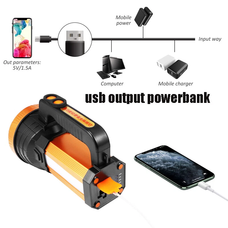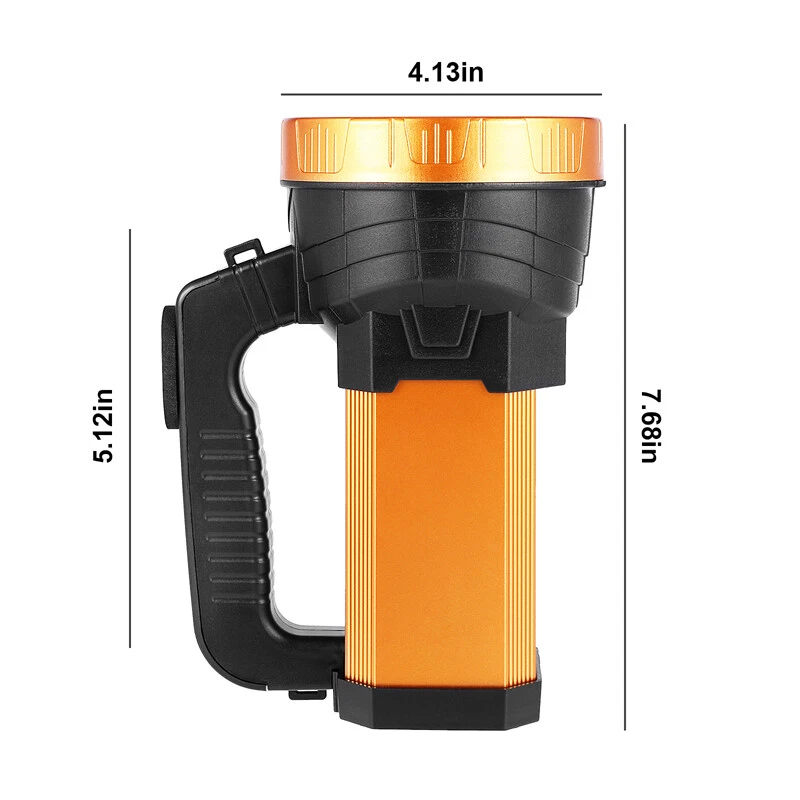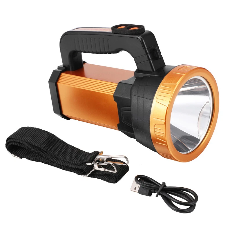 Super Bright LED Searchlight Rechargeable Emergency Spotlight w/Side Lamp 3-Gear Super Bright LED Searchlight Rechargeable Emergency Spotlight w/Side Lamp 3-Gear 100% Brand New & Excellent quality Free expedited shipping with tracking number provided Feature: * Small flashlight, light and convenient. * High quality, wear-resistant and drop-resistant. * Smart battery display: check real-time battery display at any time:25%-50%-75%-100% four-stage display. * Long battery life: large-capacity battery provides sufficient brightness for strong lighting. * Life waterproof: can deal with all kinds of rainstorms and live waterproof, the charging port is waterproof, accidentally falling water can protect the battery from water * UBS fast charging, compatible with multi-charge charging equipment, can also be used as an emergency power bank. * Suitable for work emergency, home lighting, reading, continuous lighting for camping. Specification: Material: ABS engineering plastic Flashlight size: 105*130*195mm/4.13*5.12*7.68inch Color: orange Power source: charging Lighting mode: strong light-weak light flashing-side light Power: 10W Light source form: LED Power generation method: charging 360 degree rotation: No Configure charger: yes Maximum range: more than 500 meters Applicable environment: hiking, camping, self-defense, teaching, searching, hunting, daily carrying, night riding, caving, night fishing, patrol Package including: 1 x Flashlight 1 x USB charging cable 1 x Shoulder Strap Payment Shipment Return Feedback Contact us Payment * We Accept Payment via PAYPAL ONLY . * Payment Must be Made within 4 Days of Auction Closing. * Non-Payment may Result in a UPI (Unpaid Item) being Put on Your Account. eBay will Automatically Close Your Account if You Accumulate 4 UPI's total. * Please List Your Special Requests ( Color, Size, Packages, etc. ) in the PAYPAL NOTES SECTION when you make payment. Shipment * Shipping will be handled in 24 business hours after payment got. Ship to PayPal Address only , please confirm it before paying. * Please leave your phone number in the address in case there is an address problem. Return * Returns and Exchange accepted within 60 Days. * Refund will be given as Money Back. * Free Return shipping. * Before you return the defective item,please email us for the RMA, and we will reply you in 24 hours in working days. If you do not get reply please check if your mail box has refused our reply or not, then send to us again, thanks! Feedback If you are satisfied with the transaction please remember to leave us a positive feedback (5-Star) will be much appreciated. Please DO remember to contact us before leaving the neutral (3 stars) , negative feedback (1-2 stars) or opening a case/dispute if any problem caused by the item . Normally your email would get replied within 24 hours on working day and your issue would be followed up carefully until we've reached a consensus! We will try our best to solve the problem and leave you a happy shopping mood here. Thank you! We are not only selling good items, but also selling with excellent after-sale service and a strong sense of responsibility. We will always try our best to find you a satisfactory solution if any problem takes place! Contact us Email muchbuy-outlet at Paypal registered email or ebay message.