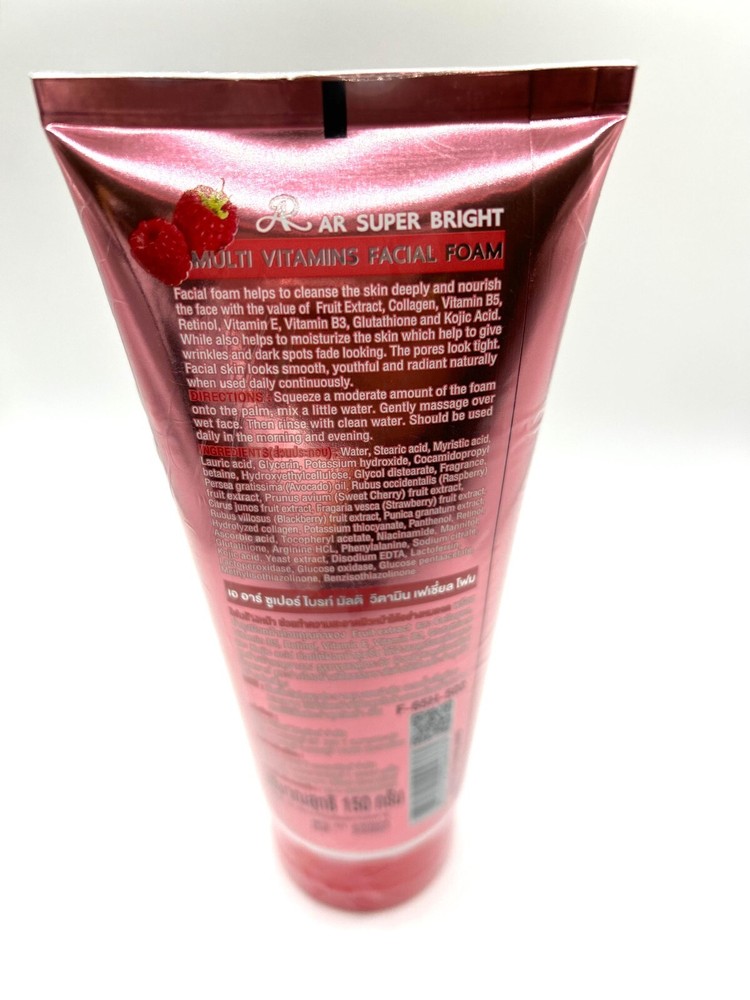 Super Bright Multi Vitamins Facial Foam Cleanser Transform your skincare routine with our Super Bright Multi Vitamins Facial Foam Cleanser , a powerhouse formula designed to cleanse, nourish, and brighten your skin for a radiant glow. 🌟 Key Benefits: Gentle & Deep Cleansing: Removes impurities, dirt, and excess oil without stripping your skin’s natural moisture. Brightening Formula: Infused with Kojic Acid and Glutathione to help reduce dark spots and even out skin tone. Anti-Aging Support: Collagen boosts skin elasticity and firmness for a youthful appearance. Hydrating Care: Vitamin B3 enhances moisture retention, leaving your skin soft and supple. Natural Fruit Extracts: Packed with antioxidants to protect your skin from environmental stressors. 💧 How to Use: Squeeze a small amount of the cleanser onto your palm. Add water to create a rich lather. Gently massage onto your face in circular motions. Rinse thoroughly with water and pat dry. 🧴 Size: [150 g] ✅ Suitable for All Skin Types Upgrade your skincare game and achieve a bright, smooth, and revitalized complexion. Order now and let your natural beauty shine through! Feel confident with our 100% satisfaction guarantee. Buy with peace of mind!