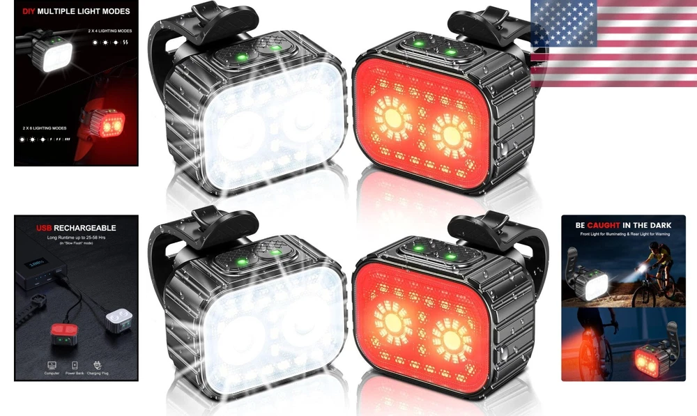 Super Bright Rechargeable Bike Lights Set - 58H Battery Life & Waterproof ‹ › ‹ › ‹ › ‹ › ‹ › ‹ › ‹ › ‹ › ‹ › Super Bright Rechargeable Bike Lights Set 58H Battery Life & Waterproof Features: Innovative design with 2 main LEDs and 19 auxiliary LEDs for increased visibility. Independent switches control a variety of light modes: front light with 4 modes, tail light with 6 modes, usable in combination. Long-lasting battery powered by a 1100MAH front light and a 350MAH tail light: headlights last up to 58 hours and taillights 25 hours in 'Slow Flash' mode. Battery indicator alerts you to charge when levels drop below 20% with a flashing green light. IPX6 waterproof rating for reliable performance in rainy or foggy conditions, extending the lifespan of the lights. Easy installation requiring no tools - just four simple steps to secure to the handlebars. Benefits: Ensure safety during night rides or in low visibility conditions. Versatile use beyond biking - perfect for hiking, camping, or emergency lighting. Ideal for all cyclists and outdoor enthusiasts, brightening their environment wherever they go. A thoughtful gift for friends and family who value safety and adventure. Why choose our Rechargeable Bike Lights Set? Elevate your cycling experience with the Super Bright Rechargeable Bike Lights Set, meticulously crafted to provide exceptional illumination, versatility, and safety. With an impressive battery life and waterproof durability, these lights are designed to withstand the elements while ensuring you remain visible in any adventure. Perfectly simple to install, even a child can do it, making it an essential accessory for every cyclist. This holiday season, give the gift of security and confidence to your loved ones or treat yourself to safer rides with our premium bike lights. Illuminate your path and ride with peace of mind. Shipping Free & Fast Shipping - We offer free shipping to most of the USA with a normal delivery time of 3-7 days. However, due to the current situation, additional delivery time (up to 3 weeks) may be required for some items. Alternative Carriers - We may use alternative carriers (e.g. USPS, FedEx, UPS, etc.) to ensure your package arrives safely and on time. Due to the use of multiple carriers, we are unable to provide a tracking number automatically. Handling Time - Orders are processed and shipped within 1-2 business days of receiving cleared payment. Shipping Restrictions - Shipping to Alaska, Hawaii, Puerto Rico, Guam, and other US territories may incur shipping charges or delivery restrictions. Please contact us before ordering, or your order can be refunded/cancelled. State Restrictions - There may be restrictions based on your state of purchase. For example, certain items may not be shipped to California due to state regulations. Contact for Tracking Updates - If you require tracking updates or have any concerns about the delivery of your order, please feel free to contact us, and we will be happy to assist you. Return 30-Day Hassle-Free Returns - We want you to be completely satisfied with your purchase. If you are not, you can return the item within 30 days of receiving it for a full refund or exchange. Easy Return Process - To start a return, simply contact us and we will provide you with a prepaid return shipping label and detailed instructions. Restocking Fee - There are no restocking fees for returns. However, the buyer is responsible for return shipping costs if the return is not due to a seller's error. Refund Processing Time - Refunds will be processed within 5 business days of receiving the returned item in its original condition. Payment We accept all major credit cards, PayPal, and Apple Pay for your convenience. Your payment information is secure and encrypted to ensure a safe and seamless transaction. Please complete your payment within 3 days of purchase to avoid any delays in shipping. Feedback Your feedback is extremely important to us. We strive to provide the best products and customer service possible. If you are satisfied with your purchase, please take a moment to leave us a positive review. If you have any concerns or issues with your order, please contact us before leaving negative feedback. We are committed to resolving any problems and ensuring your satisfaction. Contact Us If you have any questions or concerns, please feel free to reach out to our customer support team. You can contact us through the eBay messaging system. We are available Monday to Friday, 9:00 am to 5:00 pm EST, and we will do our best to respond to your inquiry within 24 hours. Buy it now and enjoy a pleasant shopping experience! UPC: Not Set Model: Bicycle Lights Item Height: Bicycle Lights Item Length: Bicycle Lights Item Weight: 144 grams Item Width: Not Set Unit Quantity: 1 Features: Rechargeable Batteries,High Brightness,Multi Light Modes,Long Runtime,Battery Indicator,IPX6 Waterproof,Easy to Install,Multiple Uses Material: Polyvinyl Chloride Brand: Unbranded Type: Head & Tail Light Set Bulb Type: LED Color: Black Country/Region of Manufacture: Not Set Manufacturer Warranty: Not Set MPN: Not Set Unit Type: grams Vintage: Not Set
