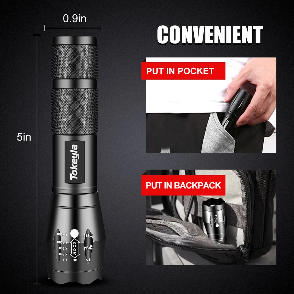 Home Payment Return Policy About us Contact us Details Super Bright Small LED Torch LED Flashlight Mini Working Flashlights Zoom 2000LM ‼️‼️【Note】 Batteries not included, please feel free to contact us if any need. Features: 1. [SUPER BRIGHT WITH 5 MODES] : The super bright flashlight LED uses advanced LED beads, emits bright light up to 2000 lumens and reaches nearly 656ft, it can easily light up an entire room! Adjustable/zoomable focus with 5 modes: High- Medium- Low- Strobe- SOS (for Emergency). 2. [WATERPROOF]: The small LED flashlight can be used in any weather. The aluminum alloy body has no rust issue. The flashlight high lumens super bright waterproof can be daily used, like troubleshooting, biking, hiking, camping, walking dog, or for emergency, survival, etc... 3. [ADJUSTABLE FOCUS]: Our handheld flashlights tactical torch utilize the latest durable LED chip, provides super bright light beam. Easy-controlled head-pulling zoom and easy mode-switch by light taps of button. Adjustable focus for use in different situations it ideal for use around the house 4. [PREMIUM QUALITY & LONG-LASTING]: Our flashlight super bright is made of high quality aluminum alloy, this super bright LED Flashlight is solid and sturdy, the edge designed is sharp and strong, can easily break the windows in case there's a car accident. Specification: Type of flashlight: Super Bright LED Flashlight Small LED Type: LED Output Power (max): 10W Power by: 1x 3.7v Li-ion Rechargeable Battery (Not included) Size: 4.80 x 1.06 x0.95 inches Material: Aluminum Weight: 2.5 ounce Function: Zoomable Light Mode: High/Medium/Low/Strobe/SOS Warm Tips: 1. Before use, please remove the the plastic packaging film of the battery. 2. Please take out the battery if you won't use for a long time to avoid battery leakage. 3. Please do not submerged handheld super bright zoomable LED flashlight underwater as it doesn't 100% waterproof. 4. Please select a lower setting when the LED flashlight super bright torch zoomable is hot as it is typical for high powered led flashlight and will not cause damage to the handheld flashlight. 5. Don't directly illuminate the eyes. Note:Please find us in first time when you find the parcel Broken/Scratch/Function Error/Miss Parts/Unwork/has not arrived etc, we always have more details and solutions, even duty for your order. Package includes: 1x Super Bright LED Flashlight Small (not included battery) Shipping Policy Payment Method Returns Policy Shipping Policy Payment Method This is the description of Payment Method. Do not dismiss your dream. To be without dream is to be without hope. To be without hope is to be without purpose. Do not run through your life so fast that you forget not only where you have been, but also where you are going. Life is not race, but a journey to be savored each step of the way. Returns Policy This is the description of Returns Policy. Do not dismiss your dream. To be without dream is to be without hope. To be without hope is to be without purpose. Do not run through your life so fast that you forget not only where you have been, but also where you are going. Life is not race, but a journey to be savored each step of the way. Store Categories Store Categories Battery and Charger Led Flashlight Led Headlamp Laser Pointer Pen Other Home Payment Shopping About Us Contact Us Copyright©2018 datacaciques Tokeyla Home Payment Return Policy About us Contact us Details Super Bright Small LED Torch LED Flashlight Mini Working Flashlights Zoom 2000LM ‼️‼️【Note】 Batteries not included, please feel free to contact us if any need. Features: 1. [SUPER BRIGHT WITH 5 MODES] : The super bright flashlight LED uses advanced LED beads, emits bright light up to 2000 lumens and reaches nearly 656ft, it can easily light up an entire room! Adjustable/zoomable focus with 5 modes: High- Medium- Low- Strobe- SOS (for Emergency). 2. [WATERPROOF]: The small LED flashlight can be used in any weather. The aluminum alloy body has no rust issue. The flashlight high lumens super bright waterproof can be daily used, like troubleshooting, biking, hiking, camping, walking dog, or for emergency, survival, etc... 3. [ADJUSTABLE FOCUS]: Our handheld flashlights tactical torch utilize the latest durable LED chip, provides super bright light beam. Easy-controlled head-pulling zoom and easy mode-switch by light taps of button. Adjustable focus for use in different situations it ideal for use around the house 4. [PREMIUM QUALITY & LONG-LASTING]: Our flashlight super bright is made of high quality aluminum alloy, this super bright LED Flashlight is solid and sturdy, the edge designed is sharp and strong, can easily break the windows in case there's a car accident. Specification: Type of flashlight: Super Bright LED Flashlight Small LED Type: LED Output Power (max): 10W Power by: 1x 3.7v Li-ion Rechargeable Battery (Not included) Size: 4.80 x 1.06 x0.95 inches Material: Aluminum Weight: 2.5 ounce Function: Zoomable Light Mode: High/Medium/Low/Strobe/SOS Warm Tips: 1. Before use, please remove the the plastic packaging film of the battery. 2. Please take out the battery if you won't use for a long time to avoid battery leakage. 3. Please do not submerged handheld super bright zoomable LED flashlight underwater as it doesn't 100% waterproof. 4. Please select a lower setting when the LED flashlight super bright torch zoomable is hot as it is typical for high powered led flashlight and will not cause damage to the handheld flashlight. 5. Don't directly illuminate the eyes. Note:Please find us in first time when you find the parcel Broken/Scratch/Function Error/Miss Parts/Unwork/has not arrived etc, we always have more details and solutions, even duty for your order. Package includes: 1x Super Bright LED Flashlight Small (not included battery) Shipping Policy Payment Method Returns Policy Feedback About US Shipping Policy Products would be shipped from Local US warehouse. Usually takes 2-5 days