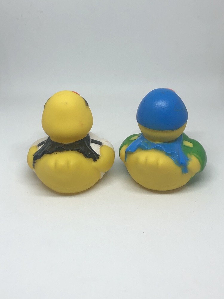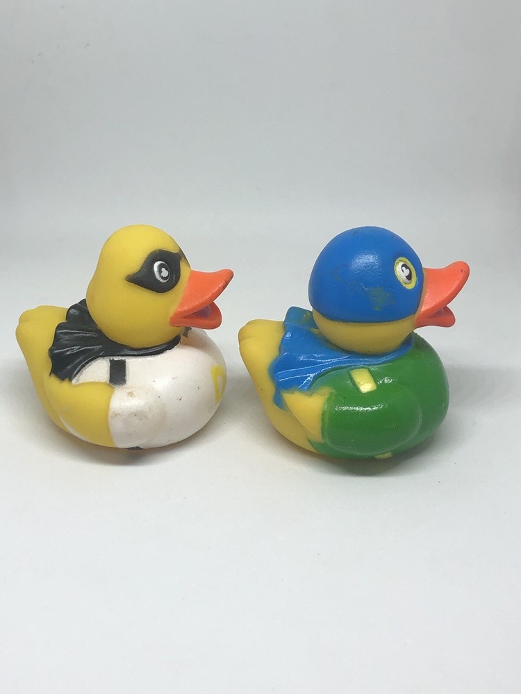 Super Hero Rubber Ducks 2” Ducky Set of 2 Bath Pool Jeep Toy. Note: they have wear shown in photos! Each duck measures about 2 inches. Thank you for stopping by!