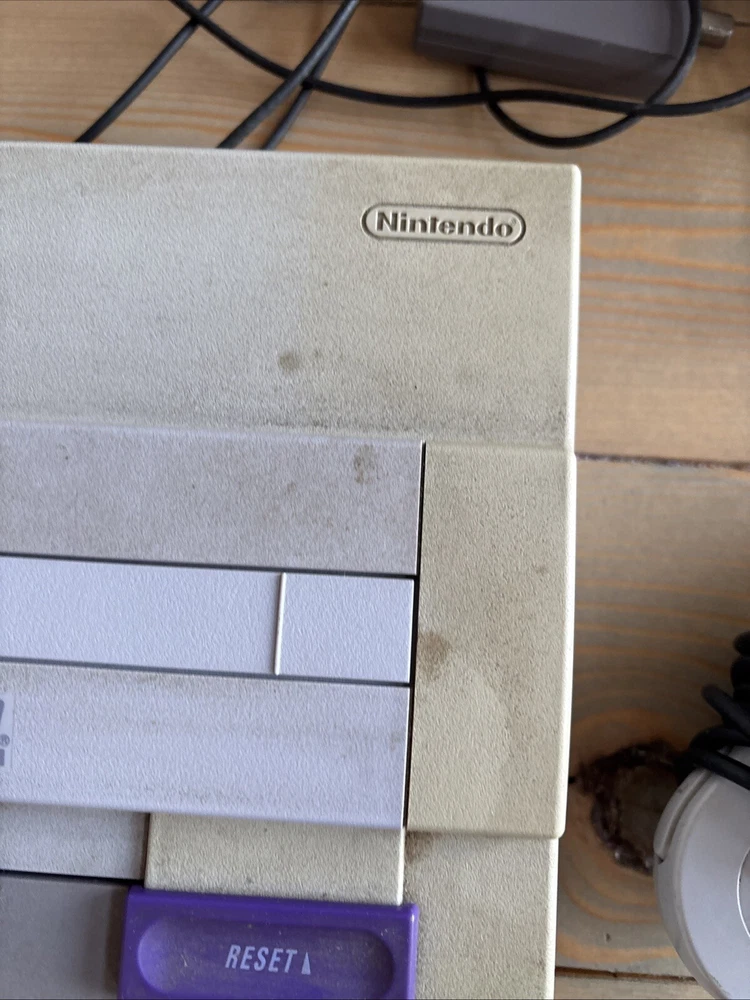 Used SNES that hasn’t been played in a while. I played all of the games on it the day before this listing. In general, the system worked. I played 8 different games. Sometimes, though, the game wouldn’t load on the first try. I don’t know if this is a console issue or game issue. It might work better with A/V cables instead of the original hookups too. System worked when tested but not 100% on the first try. Top of console is dirty even after cleaning.