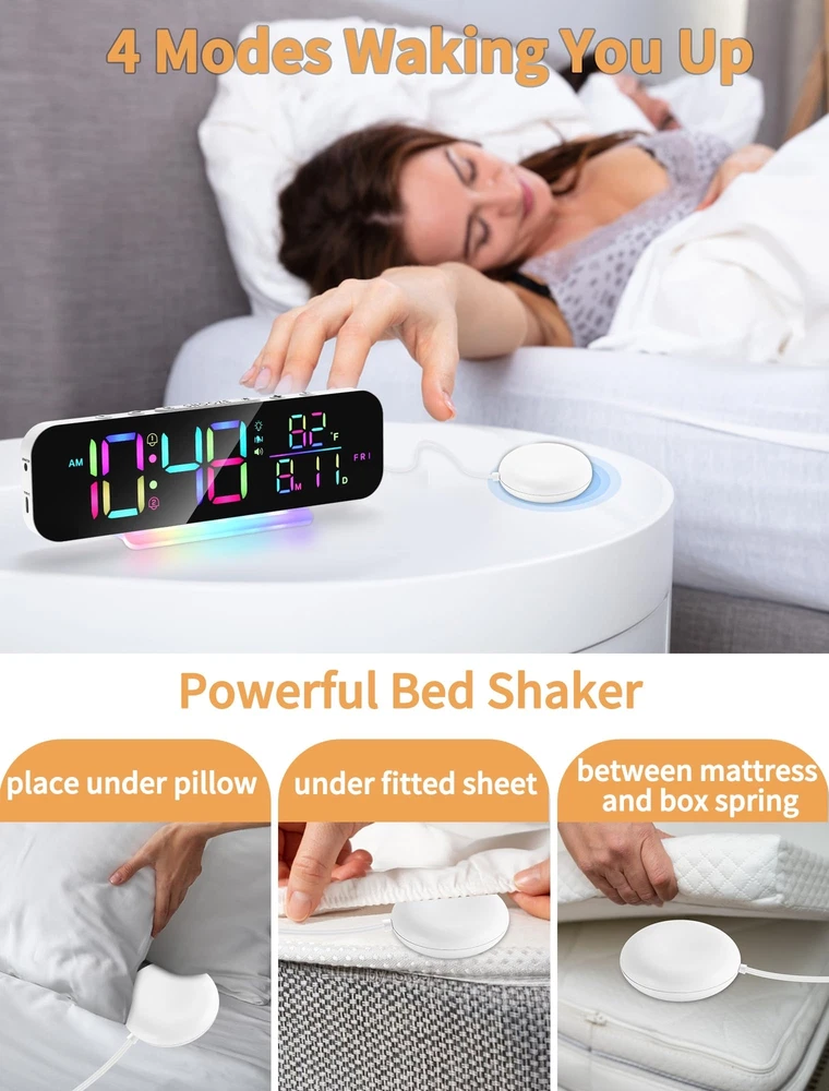 This alarm clock is a lifesaver for heavy sleepers! The ultra-loud alarm, strong bed shaker, and flashing red light make sure you never oversleep. I love the four customizable modes—perfect for anyone who struggles to wake up. The vibration is powerful but not harsh, and the loud alarm is effective without being annoying. Super easy to set up with just a button press. Works great for people with hearing difficulties too. Highly recommend for anyone who needs a guaranteed wake-up!