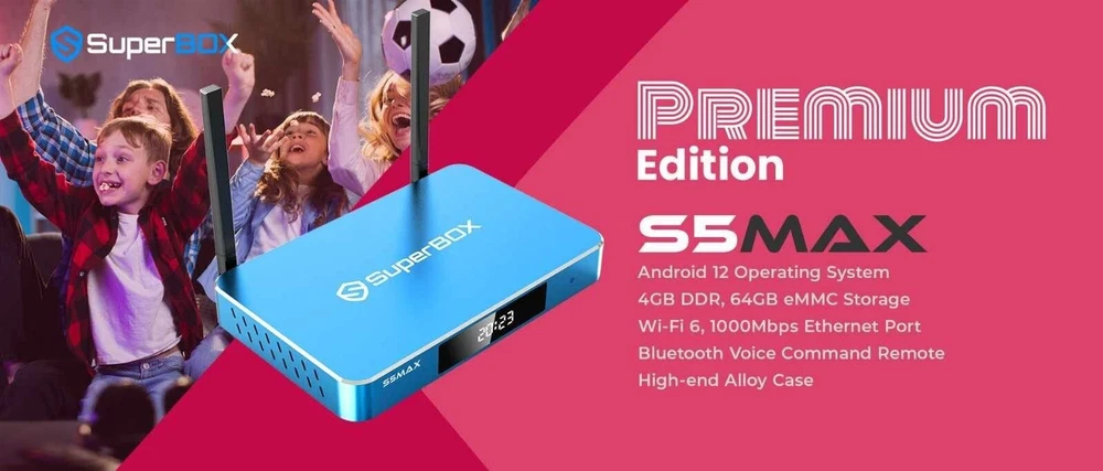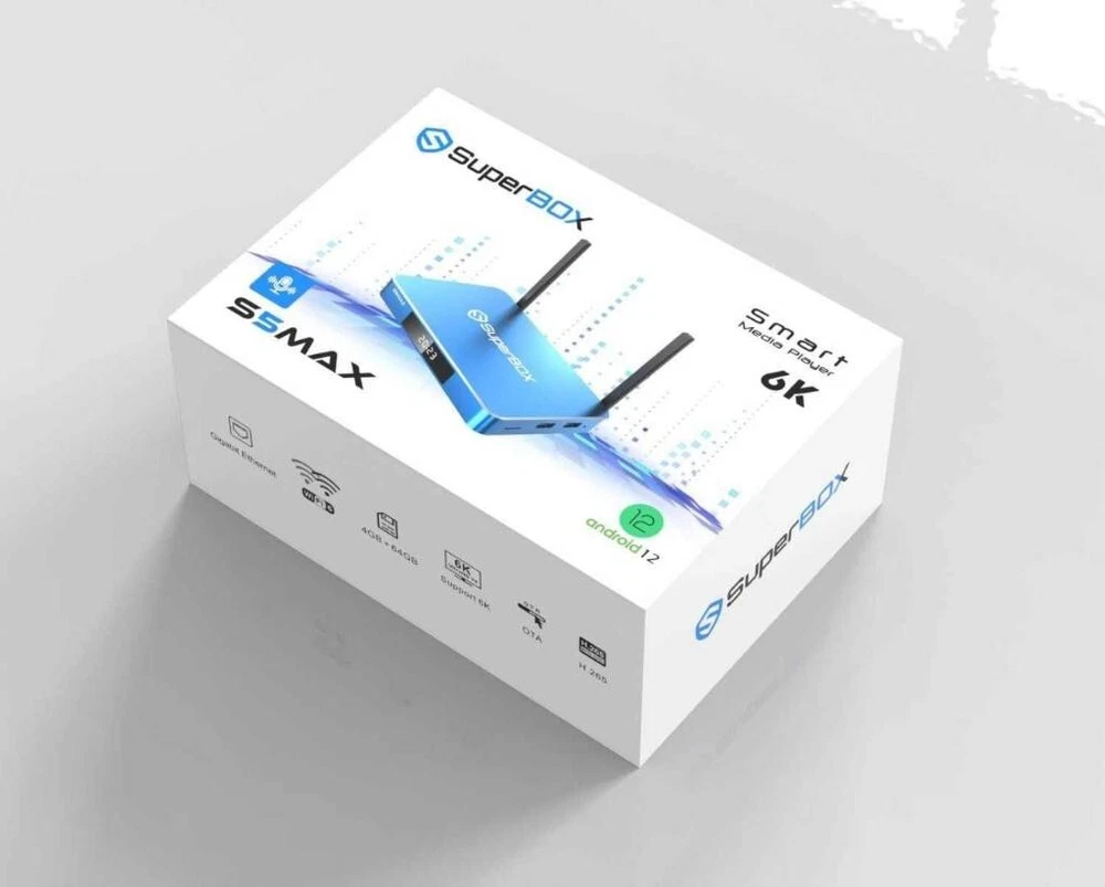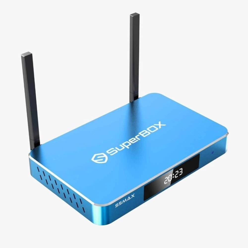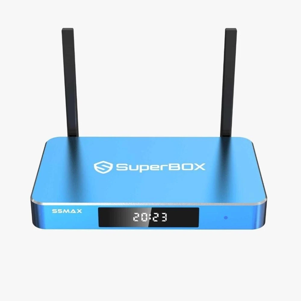 Manufacturer Warranty: 1 Year Operating System: Android Type: Tv Box MPN: S5 Max Year Manufactured: 2023 Generation: 5th Generation Maximum Resolution: 4320p Brand: SuperBox Surround Sound Formats: Dolby Digital Storage Capacity: 64 GB Model: Superbox S5 Max Connectivity: Ethernet Port, HDMI, HDMI Port, Memory Card Slot, USB Port, Wi-Fi, Bluetooth UPC: 715787209477 Playable Media Format: MPEG-4 Processor: Quad Core gtin13: 715787209477 Product Line: SuperBox Country/Region of Manufacture: China Features: 4K, Firmware Upgradeable, Keyboard Controller, Memory Card Reader, Picture Viewing, Portable, Web Browser, Wi-Fi, With Voice Control Color: Blue Audio/Video Outputs: HDMI