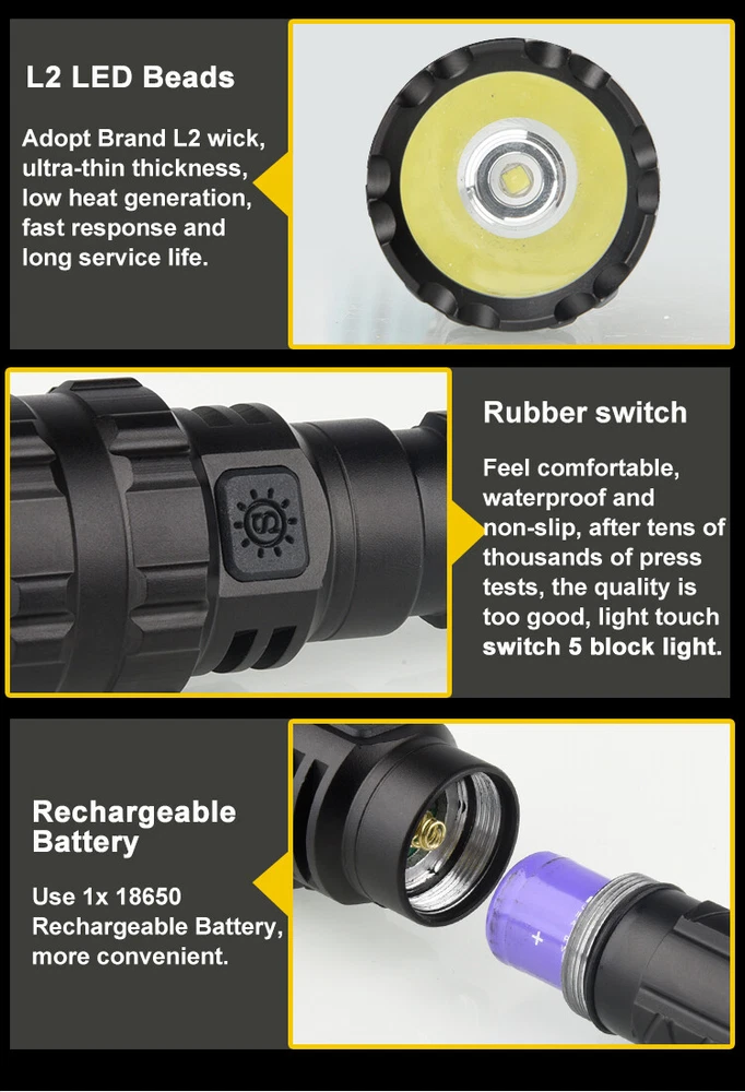 Product Description This powerful and practical medium-sized all-purpose flashlight is the perfect gift for a father or husband for any occasion. The robust, high-strength aluminum body is suitable for extreme conditions indoors and outdoors. You can count on it in the event of storms, floods, power cuts, earthquakes and other natural disasters. This portable and reliable flashlight can be conveniently stowed in your truck, camping gear or survival kit. The flash function is lifesaving when roadside repairs are made or help is asked for. It is extremely reliable and easy to use. It is the perfect flashlight for camping, hiking, hunting, exploring or even trying it out. FLASHLIGHT FEATURES: LED lamp - brighter and more efficient than a typical incandescent lamp Heavy and solid construction Low battery consumption enables hours of use Multiple functions: high, low, flash Weather, water and shockproof Tactical tail switch for one-hand operation Anti-roll and versatile Package includes 1 Flashlights, 1 Charging Cables On Jan 22, 2025 at 00:38:00 PST, seller added the following information:
