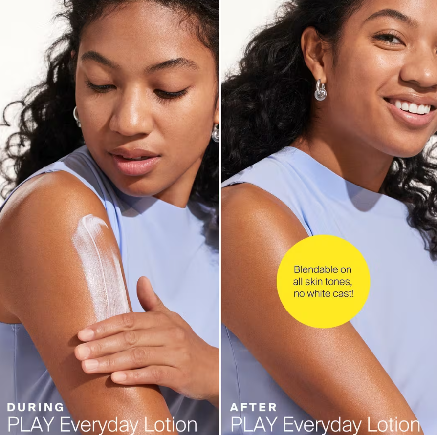 description : Supergoop PLAY Everyday Lotion SPF 50 with Sunflower Extract PA++++ is a hydrating, fast-absorbing formula that provides high-performance protection from UVA, UVB and IRA rays, and helps prevent photoaging and dehydration. Details Broad spectrum sunscreen that protects against UVA, UVB and IRA rays Supergoop's original broad spectrum sunscreen lotion for face and body Formulated with natural extracts of citrus and basil to give a light, non-sunscreen, and non-synthetic smell For all skin types Fast-absorbing and non-greasy Water- and sweat-resistant for 80 minutes Ideal for a day of play Key Ingredients Contains a natural antioxidant blend of Rice Bran Extract, Rosemary Extract, Sunflower Extract and Tocopherol (vitamin E derivative) Rice Bran Extract: Helps condition and soften the skin Rosemary Extract: Has a calming effect on the skin Sunflower Extract: Helps protect your skin from the visual effects of external environmental elements Tocopherol: Helps nourish and soften the skin Natural aromatic extracts of basil, eucalyptus, orange, lemon, patchouli and wild geranium give the formula a fresh scent Active Ingredients: Avobenzone 3%, Homosalate 10%, Octisalate 5%, Octocrylene 7.5% Formulated Without Supergoop! thoughtfully chooses ingredients based on global regulations and the latest scientific research. Supergoop! "No List" includes 1600+ ingredients that is never added in products, including oxybenzone, octinoxate, parabens, phthalates, sulfates and synthetic fragrances. How To Use Apply generously and evenly 15 minutes before sun exposure. Reapply at least every 2 hours, after 80 minutes of swimming or sweating or immediately after towel drying. Precautions: For external use only. Do not use on damaged or broken skin. Stop use and ask a doctor if rash occurs. When using this product keep out of eyes. Rinse with water to remove. Keep out of reach of children. If swallowed, get medical help or contact a Poison Control Center right away.