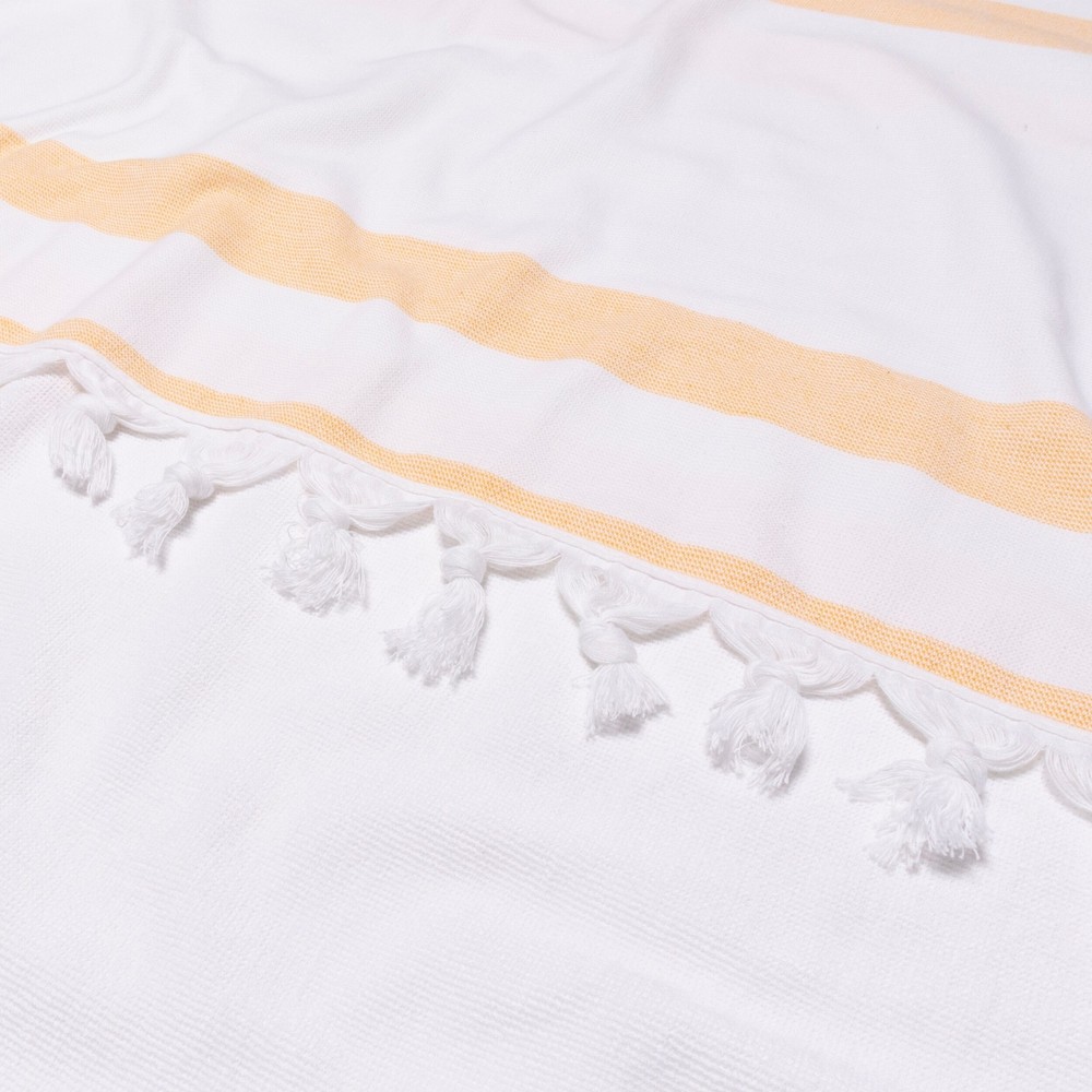 Catch some rays at the pool, beach, or lake with the Kai Stripe Fouta Beach Towel with Tassels. Crafted from 100% Cotton, this large, highly absorbent beach towel helps to get you dry quickly after a dip in the ocean, pool, or hot tub. On one side, this towel features a woven texture that is soft to the touch and a terry cotton construction that is fast-drying on the other side. The oversized stripe design is available in an array of bright, seasonable color options with tassel details on the ends to make this a must-have accessory wherever your aquatic adventures may take you.FEATURES: Set includes 1 beach towel 100% Cotton fabric is highly absorbent and breathable Colorful striped pattern with tassel detailing Flatweave construction on one side with a terry weave reverse Woven Free Shipping Over $49.99* Details Superior Kai Stripe Fouta Beach Towel with Tassels - 35" x 68" Product Description: Catch some rays at the pool, beach, or lake with the Kai Stripe Fouta Beach Towel with Tassels. Crafted from 100% Cotton, this large, highly absorbent beach towel helps to get you dry quickly after a dip in the ocean, pool, or hot tub. On one side, this towel features a woven texture that is soft to the touch and a terry cotton construction that is fast-drying on the other side. The oversized stripe design is available in an array of bright, seasonable color options with tassel details on the ends to make this a must-have accessory wherever your aquatic adventures may take you. FEATURES: Set includes 1 beach towel 100% Cotton fabric is highly absorbent and breathable Colorful striped pattern with tassel detailing Flatweave construction on one side with a terry weave reverse Woven texture offers a smooth, comfy surface for lounging Lightweight to fit into any beach bag or suitcase Generously sized towel to help get you dry quickly Towel folds up compactly making it ideal for travel We're committed to make products safer for you and safer for the world; STANDARD 100 by OEKO-TEX certified; Every component of this product has been tested and verified free of harmful substances and produced sustainably Machine washable. Recommended to follow product care label instructions Beach Towel measures 35 inches wide x 68 inches long