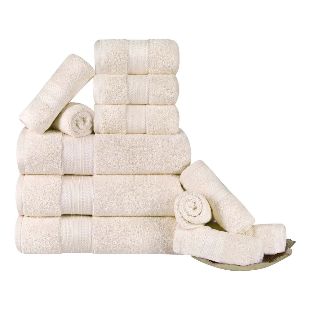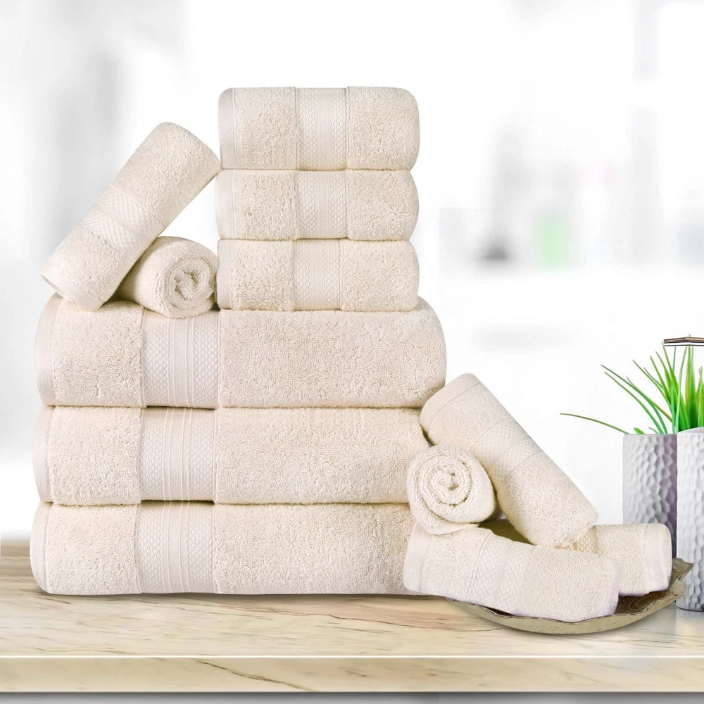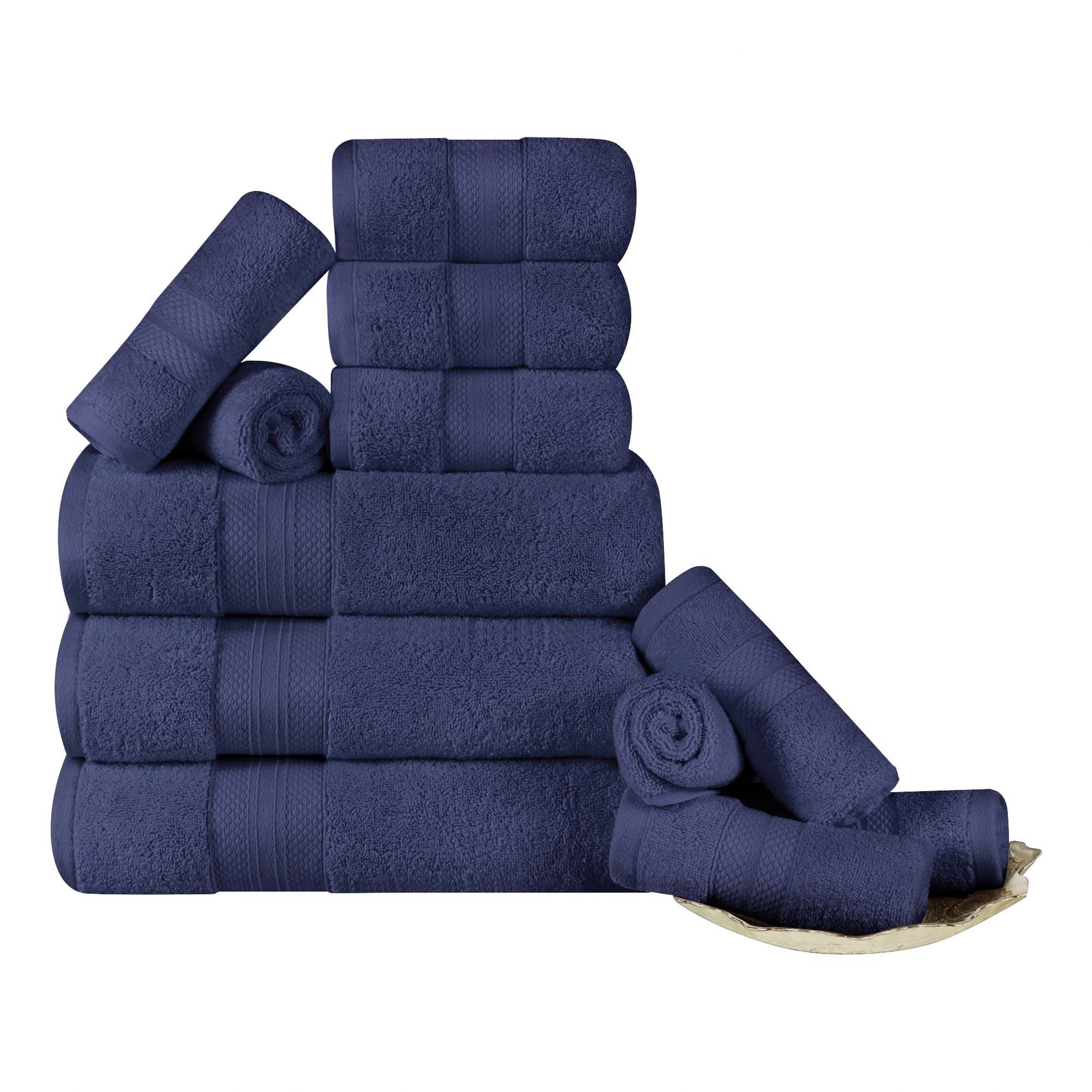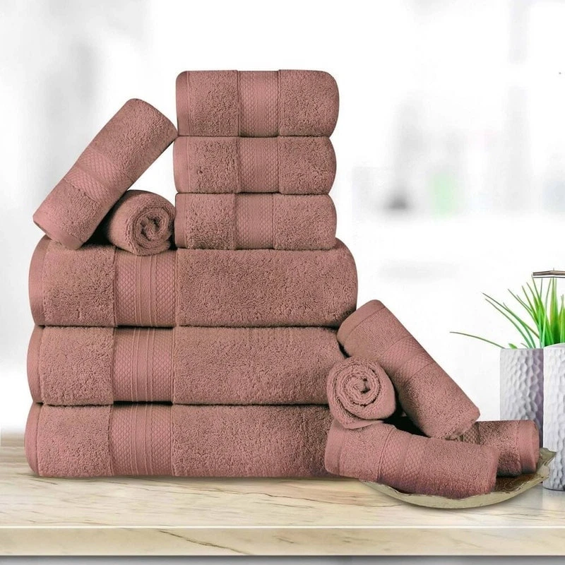 Treat yourself to spa-like luxury with the Turkish Cotton Highly Absorbent Ultra Plush Solid Heavyweight Towel Set. Our most luxurious Turkish cotton towels have a heavy towel weight, to keep you warm and get you dry quickly. These ultra-plush and fluffy towels will sop up moisture effortlessly, keeping you cozy as soon as you step out of the shower or bath. Pamper yourself, or reserve this set for guests, while giving a modern flourish to any master bath, powder room, or guest bath.Features: Set includes: 3 bath towels, 3 hand towels, 6 face towels/ washcloths Each solid towel displays a dobby border Crafted from Turkish Cotton Available in Black, Crown Blue, Coral, Dusty Aqua, Denim Blue, Grey, Hazelnut, Ivory, Olive Green, Taupe, White, or Wisteria color options Terry loop weave Free Shipping Over $49.99* Details Superior Turkish Cotton 12 Piece Solid Plush Heavyweight Towel Set Product Description: Treat yourself to spa-like luxury with the Turkish Cotton Highly Absorbent Ultra Plush Solid Heavyweight Towel Set. Our most luxurious Turkish cotton towels have a heavy towel weight, to keep you warm and get you dry quickly. These ultra-plush and fluffy towels will sop up moisture effortlessly, keeping you cozy as soon as you step out of the shower or bath. Pamper yourself, or reserve this set for guests, while giving a modern flourish to any master bath, powder room, or guest bath. Features: Set includes3 bath towels, 3 hand towels, 6 face towels/ washcloths Each solid towel displays a dobby border Crafted from Turkish Cotton Available in Black, Crown Blue, Coral, Dusty Aqua, Denim Blue, Grey, Hazelnut, Ivory, Olive Green, Taupe, White, or Wisteria color options Terry loop weave is highly-absorbent to get you dry quickly Single-ply thickness for added comfort and durability Pairs with Modern, Traditional, or Transitional bathroom decor styles We're committed to make products safer for you and safer for the world; STANDARD 100 by OEKO-TEX certified; Every component of this product has been tested and verified free of harmful substances and produced sustainably For the most luxurious results, we recommend to wash with like colors, tumble dry low, and remove promptly from the dryer. Please follow care label instructions for best results Dimensions: Each bath towel measures 28 inches wide by 52 inches long Each hand towel measures 16 inches wide by 28 inches long Each face towel measures 12 inches wide by 12 inches long