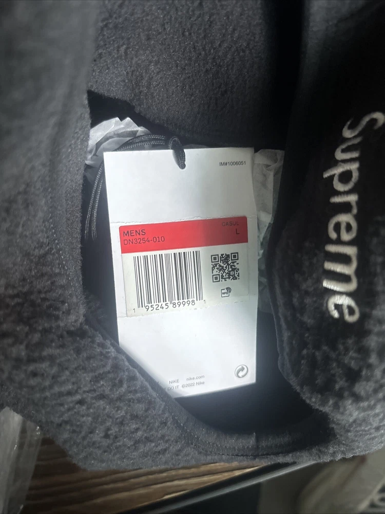 Stay warm and stylish with this Supreme Nike ACG Fleece Pullover in Black, featuring a bold Hype Box Logo on the front. Made from soft fleece fabric, this pullover is perfect for everyday wear. The regular fit and size Large make it ideal for men who appreciate comfort and statement streetwear. Add this iconic hoodie to your activewear collection and elevate your casual look effortlessly.