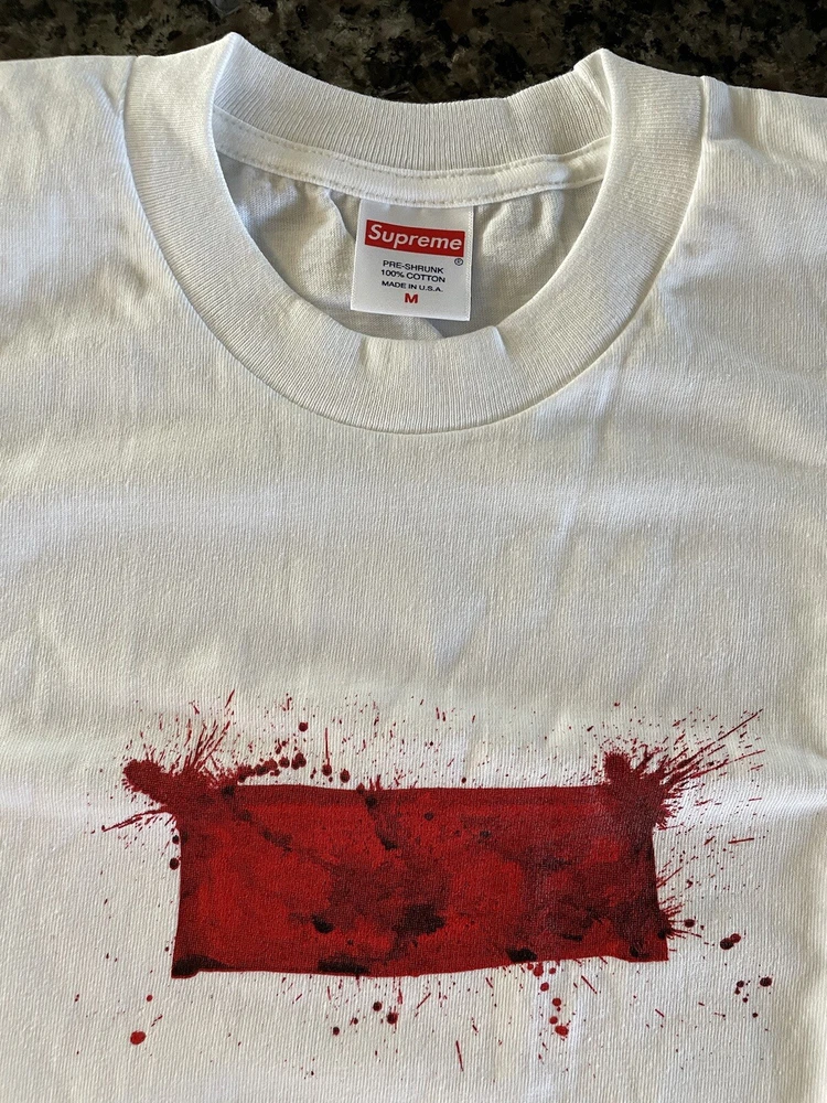 This Supreme Ralph Steadman Box Logo Tee is a must-have for any fashion-forward man. The white t-shirt features the iconic box logo of the brand and is made of high-quality materials that ensure both comfort and durability. The regular fit and short sleeves make it perfect for any casual occasion, while the size medium ensures a great fit for most men. The t-shirt is not vintage and comes in the color white, with accents that include the logo. It is a great addition to any wardrobe and is perfect for men who want to show off their love for Supreme.