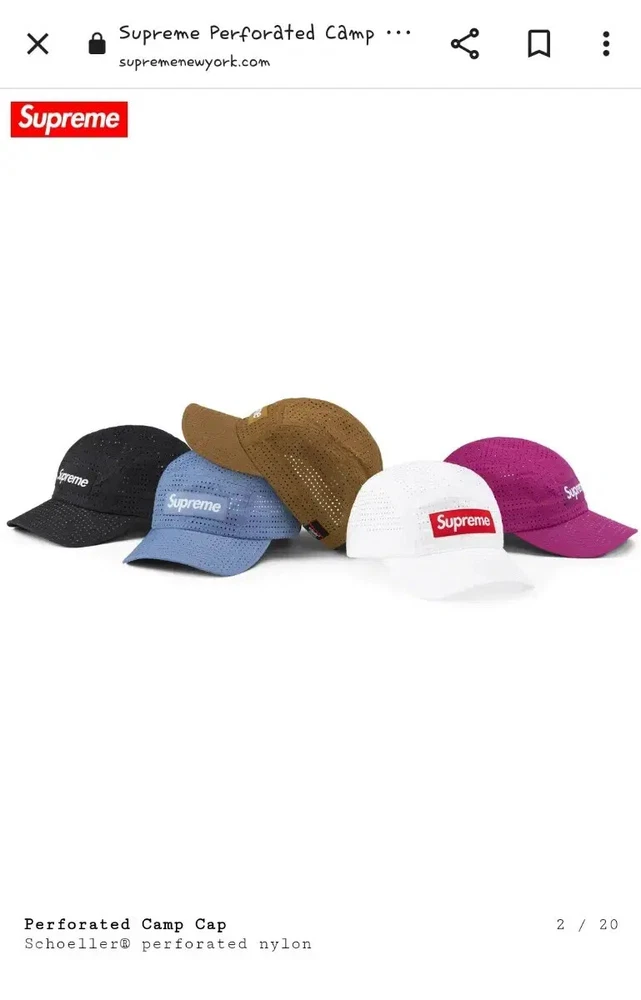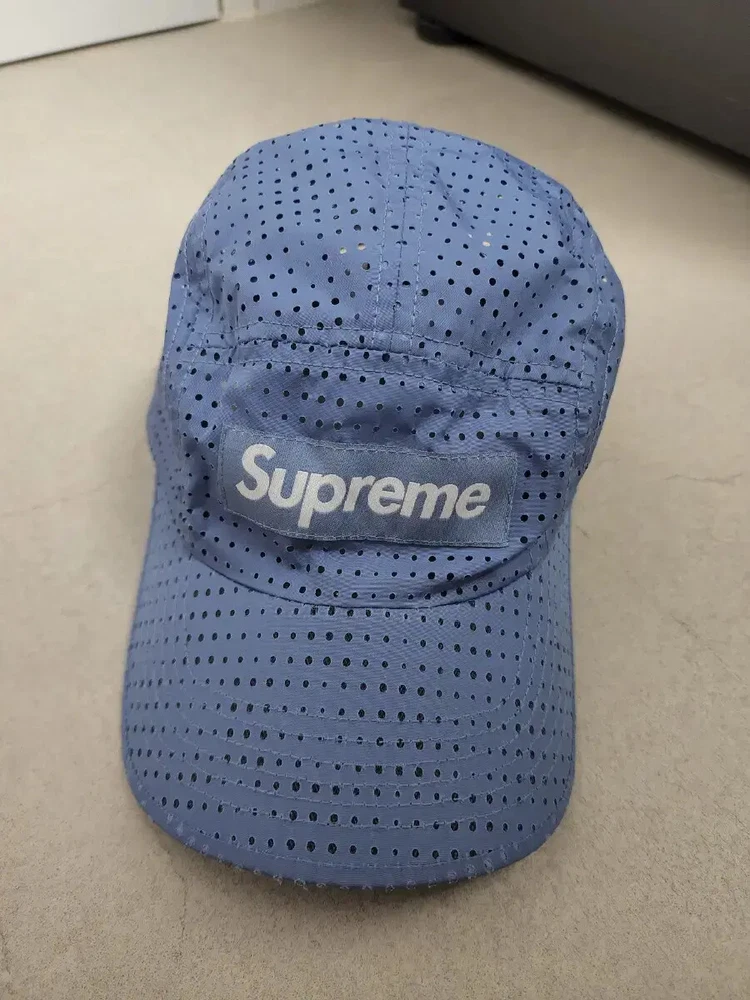 Genuine SS22 season perforated mesh blue camp cap for sale. Domestic shipping. New products You know that only the items purchased at the Supreme store come with a pickup, right? I bought it directly from the Supreme New York store. The point is that there are small holes all over the hat, so it is well ventilated and the water drains quickly when playing in the water. The cool blue color is perfect for summer! This hat is designed by Schoeller Textil AG, a famous Swiss material company, and made using innovative new mesh fabric, so its collectible value increases even more. It's a hat made by a company that has been researching outdoor fabrics since 1868, so I think it would be great to wear as a summer swimming hat or for outdoor activities such as hiking! If you buy it with other products in the store, we'll give you an additional discount:) We offer exchange x, return x, and free shipping.