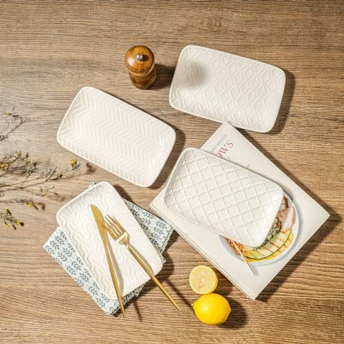 Menu 1. We require immediate payment. 2. We currently accept payment via eBay managed payments only. 3. Once payment is cleared, we will dispatch your shipment within 1-3 business days. Please refer to the "Shipping" tab for more information regarding shipping speed to your destination. Sureasy Ceramic Salad Plates, Rectangular Appetizer Plates 8 inch, Small Serving Plates for Entertaining, Small Dinner Plates Set for Dessert, Sushi, Embossed Porcelain Dish, Set of 4, White Product description VERSATILE SMALL DESSERT PLATES: Each rectangular salad plates measures 8.7 x 4.9 inches with lipped rim which keeps food from slipping out, and each one is different embossed pattern for adds a touch of style for tea party, dinner party, birthday, wedding, Christmas etc., Perfect size great for displaying various foods such as salad, sushi, cookie, cheese, sandwich etc ELEGANT TIMELESS EMBOSSED PATTERN DESIGN: These dessert plates with unique exquisite embossed pattern brings visual appeal to the table and perfectly decorated the food. With four mix up the pattern can add layers of interest and elegance to your table setting, making your dinner more cheerful HEALTHY STURDY PORCELAIN: Made of food-grade ceramic and fired at a high temperature which ensure them sturdy and chip-resistant. Safe for Microwave, Oven, Freezer and Dishwasher. (Please Note that due to the raised embossed surface is not suitable for knife use on the plate) STACKABLE & EASY TO HOLD: The flat bottom shape can be easily stacked and they don't take up a lot of room in the cabinet. These small serving plates can be cleaned easily using warm or cold water. The rectangular appetizer plates with slightly curved edges design which makes the grip more comfortable IDEAL PRESENT CHOICE: The porcelain small dinner plates with unique glaze, which is a great option for your family and friends on special days such as Housewarming, Christmas, Thanksgiving, Mother's Day, Wedding Party, Relocation and other Anniversaries PLEASE MESSAGE US IF YOU HAVE ANY OTHER QUESTIONS, AND MANY THANKS FOR READING ALL OF THIS. Copyright ©#. All Rights Reserved.