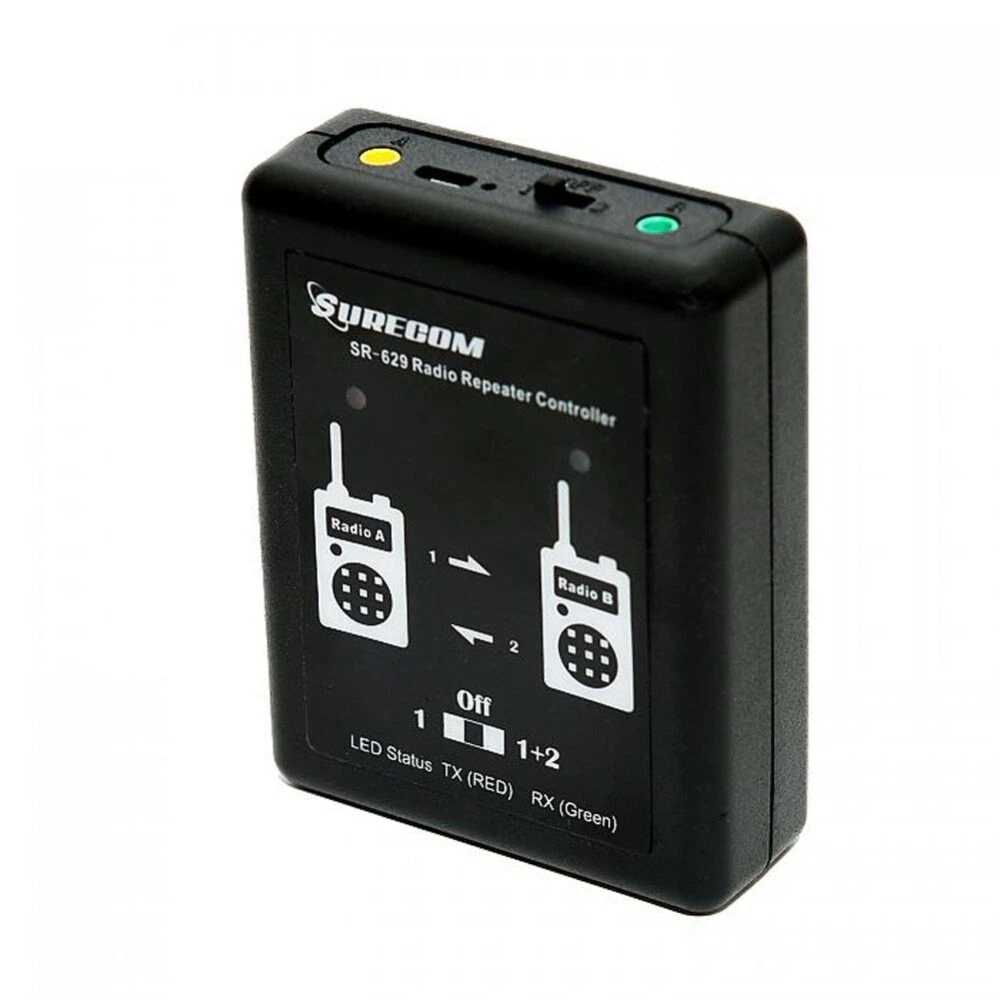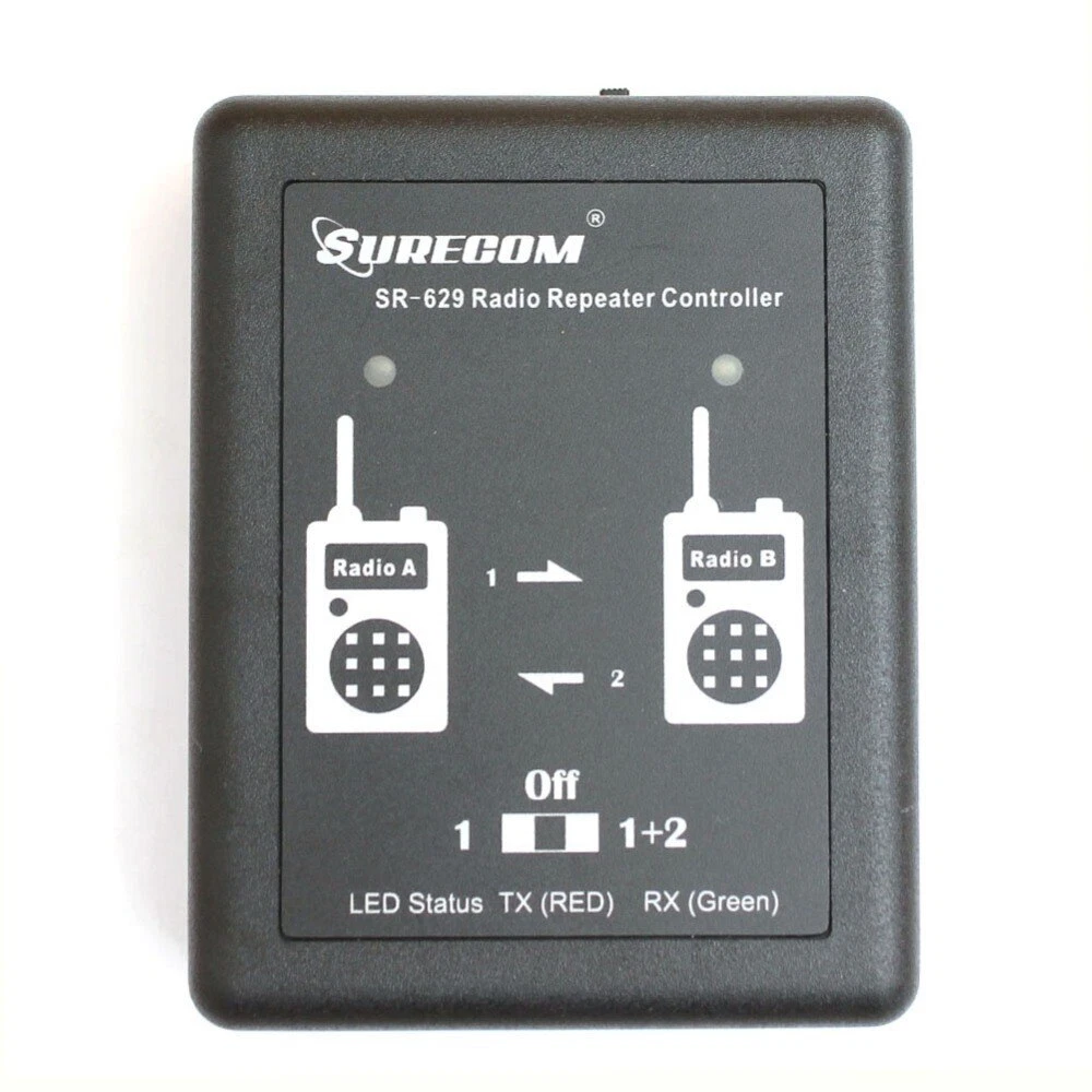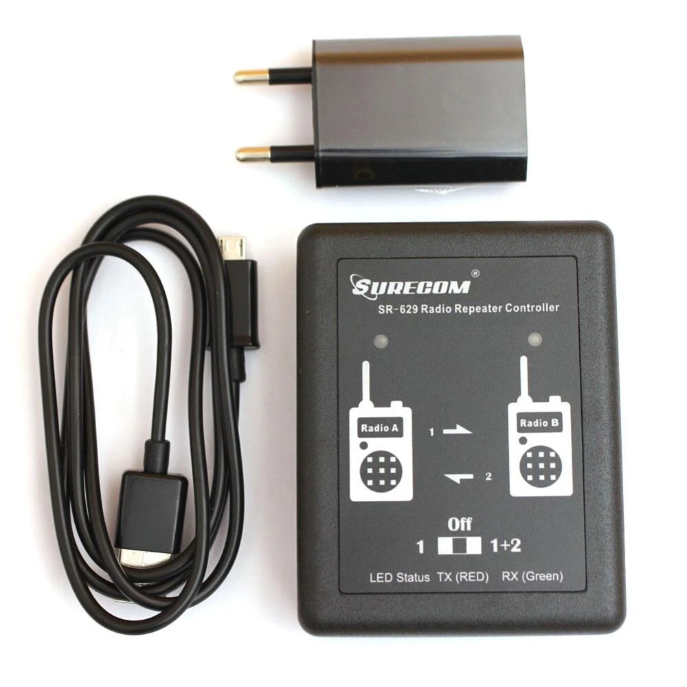 Surecom SR-629 Duplex Repeater Controller Cross Band For Handheld Or Mobile Walkie Talkie S pecifications: The SR-629 is a multi-function and cheaper device that connects any handheld or mobile radio. By equipment and so on our assemble the build, the new generation trunk-line board,the internal structure design are finer, the outward appearance is more attractive. Beside scan provide a the basic repeater function which has following the receiver transmitter,furthermore has the Simple connection, provides the more ideal 2-way radio conversation region for you, causes you maintains the relation in the bigger operating region. When the radio units are connected, the received signal on a radio unit will be real time transmit on the other radio unit. e.g. VHF/VHF, UHF/UHF, VHF/UHF or UHF/VHF modes Mode 1: When Radio A is RX, control to Radio B will TX. When Radio B is RX, control no Funtion Mode 2 : When Radio A is RX, control to Radio B will TX. When Radio B is RX, control to Radio A will TX. The purpose can be done in two different places and using different frequency bands intercom, through our mutual communication relay station. This is a radio cross band duplex repeater controller. It is an easy of operation and cost effective and highly flexible platform for setting up bi-direction cross band duplex repeater with mobile radio and handheld radio. The SR-629 has 2 audio ports input and out , they are used to connect with mobile and handheld radio. Multi-LED display 2 of radio status , and build-in battery Level Main Features: Works with most popular handheld radios Multi- LED display 2 radio status , And controller Battery Level Real time duplex repeater with link radio Allows user to change the DTMF remote control password by radio Operates on both build-in Li-ion battery 72 hours long life operation External DC 5V power supply Professional manufacturer low power consumption . Two mode select . Package Contents: 1x SR-629 Duplex Repeater Controller 1x English User Manual 1x USB charger cable 1x USB AC adapter 100-240V 2x Radio Cable (as you choose)