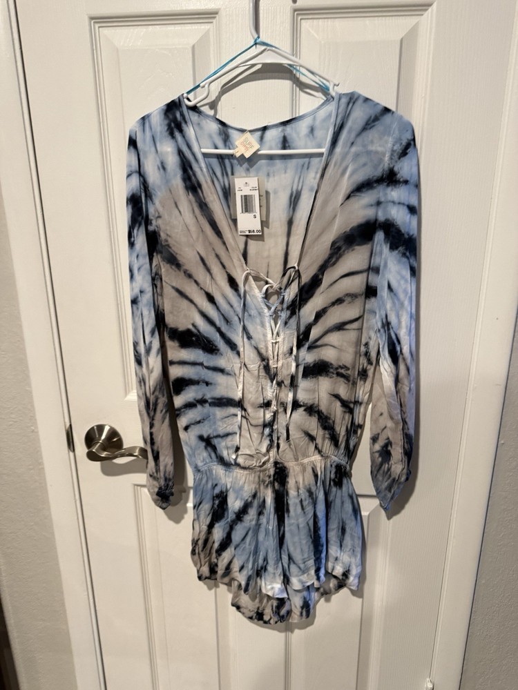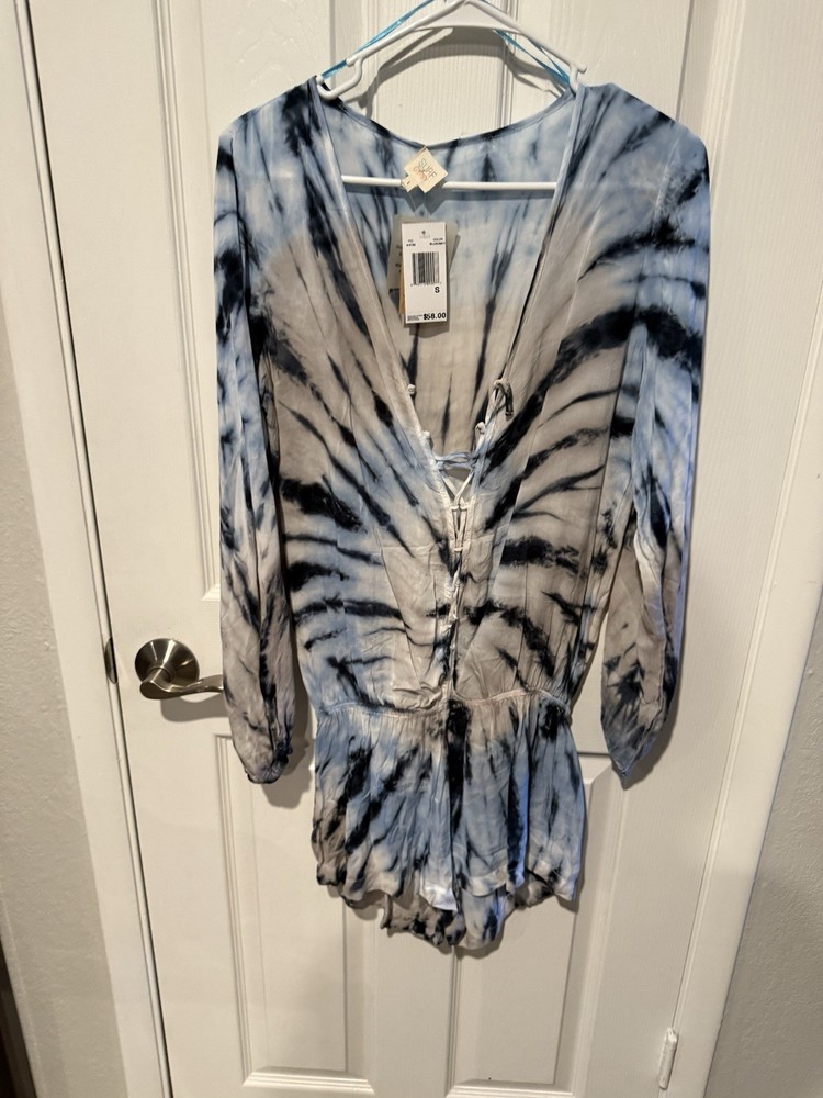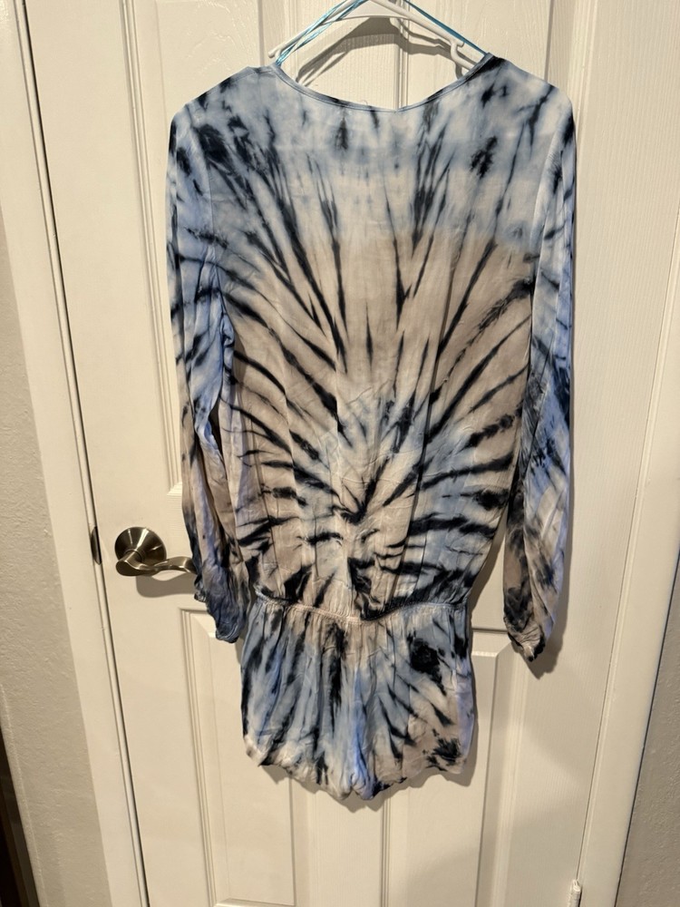 The Surf Gypsy Tie Dye Long Sleeve Romper is a stylish one-piece outfit designed for women. This romper features a vibrant multicolor tie-dye pattern, long sleeves, and a regular size small fit. Perfect for casual wear, this romper combines comfort and style, making it an ideal choice for any trendy and laid-back look. Ideal for those who love a unique and eye-catching addition to their wardrobe, this romper is sure to make a statement. A20