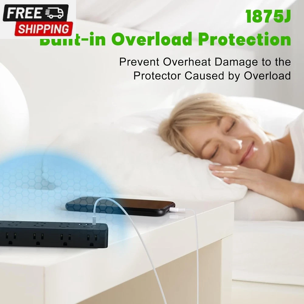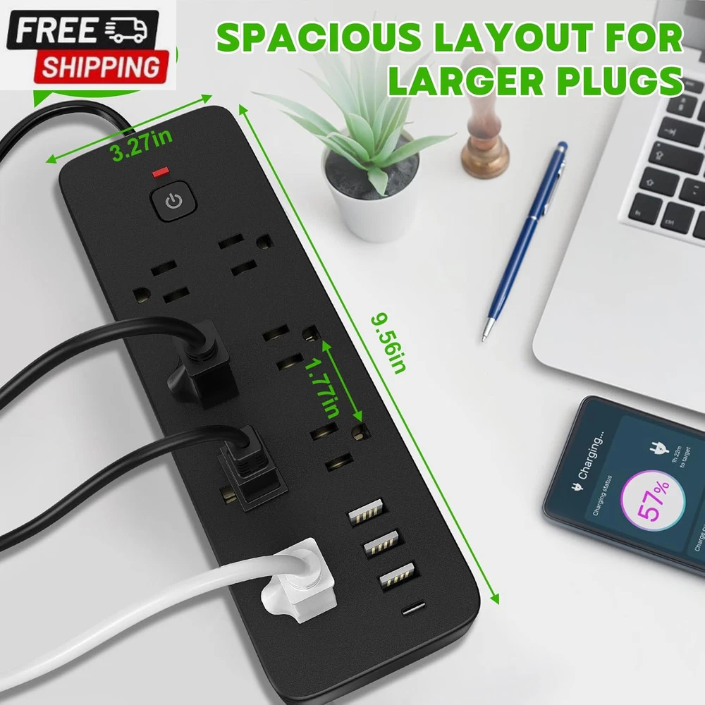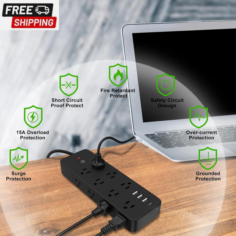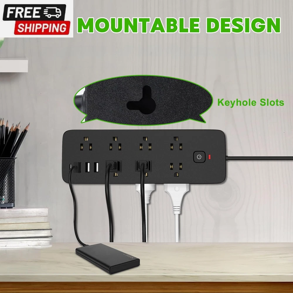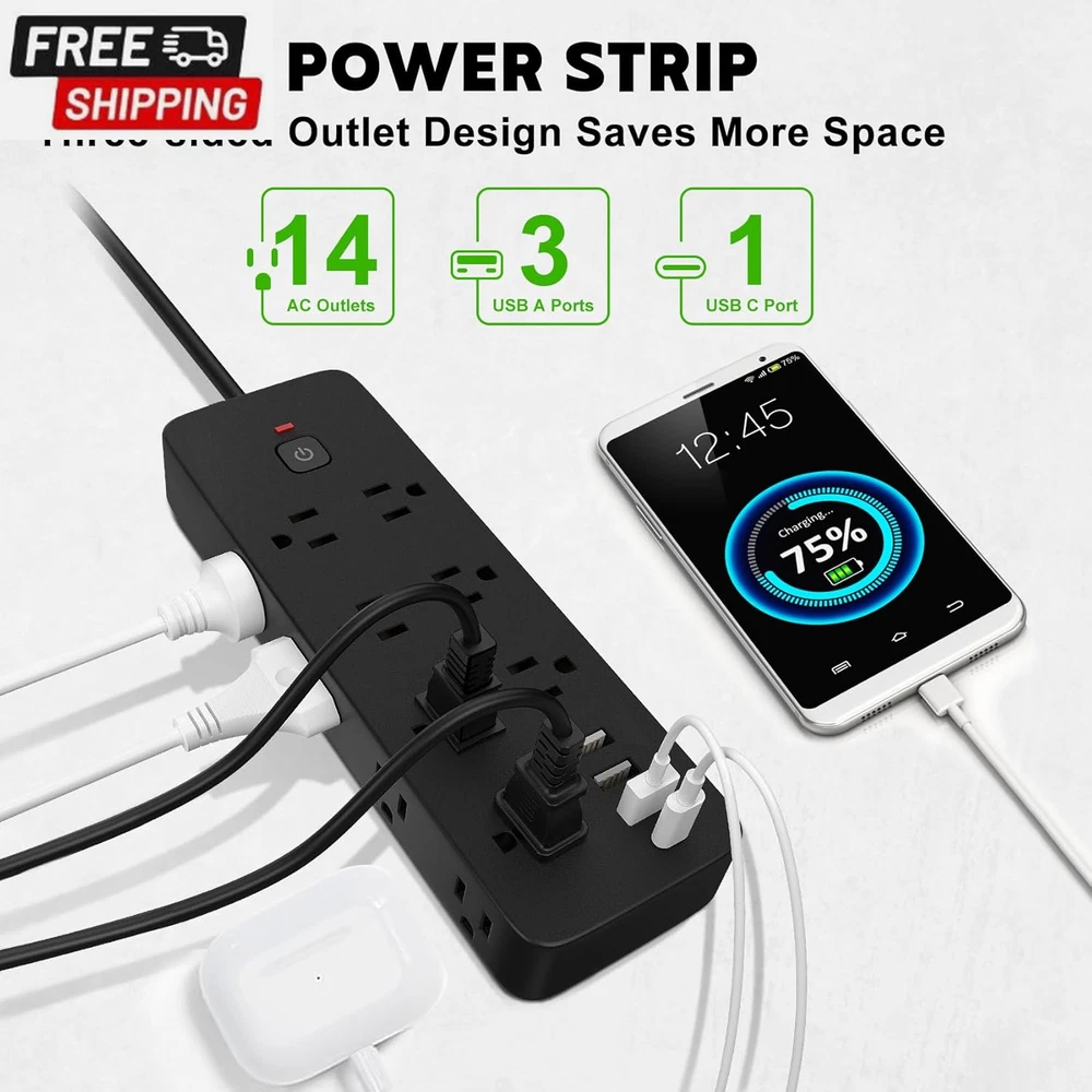 Fast Shipping On All Items 30 Days Money Guarantee Customer Support Excellent Service 100% Satisfaction Satisfaction Guaranteed Surge Protector Power Strip, 14 AC Outlets with 3 USB Ports and 1 USB C, 5FT Flat Plug Extension Cord with 3 Sided Power Strip, Wall Mount for Travel Home Office College Dorm, Black (1875J) Specification Color Black Product Dimensions 9.56"L x 3.27"W Item Weight 0.1 ounces Voltage 125 Volts Special Feature Compact 3.27 "w x 9.56 "w. Weight: 0.1 oz Item Description 18 in 1 power strip with 4 USB ports: unveil the potential of this surge protector power strip flat plug, boasting 14 well-spaced AC outlets and 4 USB charging ports(3 USB+1 Type-c). Power up to 18 devices simultaneously. AC outlets provide a substantial output of 1875W/15A, while USB ports yield 5V/2.4A each Surge protector power strip: this black power strips with surge protection wall mount features 1875 Joules surge protection together with overload protection, short-circuit protection, over current protection, over-voltage protection and overheating protection. Fire-resistance PC shell with flame retardant at 1382℉ makes this 14 outlet power strip more durable Suitable for any occasions: 5 ft extension cord with multiple outlets has 2 mounting hole locations on the back of the black power strip which can be easily installed under horizontal or vertical walls or under-desk mounting. The compact design saves more space, suitable for the home, office, and college dorm room essentials Comprehensive safety & after sale service: our surge protector with usb ports has UL certified. This flat plug extension cord has multi safety system to give you peace of mind while powering your devices. If you have any questions with 14 outlet power strip flat plug, please tell us. It's our pleasure to serve you USB-C fast & smart charge: this 5 ft extension cord with multiple outlets has 4 USB ports total 3.0 A, each USB A port features 2.4A max output. USB C charging port features 3A max. This surge protector with usb ports builts with smart technology, detecting charging devices and deliver optimal charging speed automatically, compatible with most USB devices Product Description Specifications: Rated Voltage: 1875W-15A MAX.125V Surge Protector Rating: 1875 joules USB Input: AC 110-240V 50/60HZ USB Charger: DC5V. 2.4A MAX USB Total Output: 5V. 3A 15W Surge Protector Power Strip with USB 14 Outlets Power Strip with 4 USB Charging Ports This power strip can support 18 devices simultaneously. 3 side space-saving design and compact size, ideal for small and tight place, great for home, office and travel use. It also with 2 holes on back, easy to mount it everywhere. Most devices and home appliances can be connected. Compatible with110~240V worldwide voltage, meaning you could use it while traveling overseas together with a travel plug. However, it's not a voltage converter and your device needs to support 110-240V as well. 3 Side Space-saving & 1.77 Inch Widely AC Outlets 14 AC Outlet + 3 USB-A + 1 USB-C Ports 5 Ft Braided Upgrated Power Cord Multi Safety Certificate & 1875J Surge Protection 1382℉ Fire Resistant Material Made of fireproof ABS+PC, it can withstand high temperatures up to 1382℉. High-end solid capacitors ensure complete protection against electrical shorts, overheating, overcharging, over-current and over-voltage, so it will not heat up during use and keep your equipment safe. Overload Protection Switch This surge protector outlet features with surge protection which rating up to 1875 Joules. Power switch with over-load protection also, it will auto detects the external load, shut-off and cut down all the power at the first time to well protect your devices. 3 Side Non-blocking Design The unique 3 sided space saving design and 14 widely spaced ac outlets are separated enough to fit big plugs without blocking each other. The AC outlets with 1.77 inches long space in between, larger than standard 1.5-inch socket. Larger spacing makes it easier to use for all kinds of equipment. Wall Mounted Type There are 2 hanging buckles on the back of the power strip, which can be hung on the wall or placed on any table horizontally or vertically according to the usage scene, which is stable and not easy to slip off. Note: mounting screws not included. About us We offer the best prices around on high quality products. Our E-store includes media such as books, movies, music and games while offering electronics, toys, sporting apparel, clothing, tools, general home, garden items and more. Shipping We are always working hard to ensure your package arrives as soon as possible. Please understand that some factors like weather, high postal traffic, and the performance of shipping companies are outside of our control. We offer free shipping to the lower 48 states and ship within 2-3 business days of payment, usually sooner. We do not accept P.O. Boxes. Please provide a physical address. For shipping outside of the continental USA, we only use eBay's Global Shipping Program.The item is shipped to KY and then sent to the rest of the world. International customers are responsible for all duties and taxes. Continue to check out to calculate costs for shipping the item to your country. Messages regarding eBay's Global Shipping Program MUST be directed at eBay EXCLUSIVELY. Returns We offer a 30-Day Return Policy on items in which you are not completely satisfied with. You have the option of a full-refund or an exchange of the item. No returns are available on items shipped outside of the USA Satisfaction We try over very best to make sure every customer is completely satisfied. If there's a problem, message us! We're happy to help. Payment Options Shop With Confidence