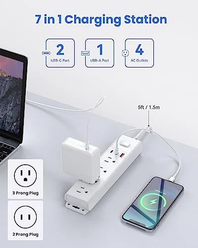 Menu 1. We require immediate payment. 2. We currently accept payment via eBay managed payments only. 3. Once payment is cleared, we will dispatch your shipment within 1-3 business days. Please refer to the "Shipping" tab for more information regarding shipping speed to your destination. Surge Protector Power Strip, 5ft Extension Cord with 4 Outlets,30W Fast Charging USB Ports, Flat Plug Wall Mount Power Strip, Desk USB Charging Station for for Home, Office Product description [7 in 1 Power Strip with USB] The power strip with 4 AC surge protector outlets and 3 usb ports(2x USB-C, 1xUSB-A),can power up 6 devices simultaneously.Compatible with your cellphone, laptop, tablet, earphone, or cameras without a variety of converters, keep your desktop organized, a must have accessories for colleague dorm room, home, office, bedroom, kitchen and etc. [30W Fast Charging USB Ports]With an additional 2 USB C and 1 USB A ports, the power strip allows for charging your devices at a maximum rate of 15/3A,Equipped with smart charging technology, it can automatically detect your devices, ensuring optimal charging efficiency. This makes it a perfect fit for charging a variety of devices, including your iPhone, iPad, tablet, and Bluetooth earphones [5ft Extension Cord with Flat Plug]The low-profile flat plug is designed to fit easily into tight spaces. The 5ft extension cord is constructed with pure copper, providing better current carrying capacity. This power cord is durable,high wear resistance, protects circuits from fire, impact or rust, prevents dents and scratches. [Easy Mount on Wall and Desk]This mountable power strip features a screw fixation design on both ends, allowing for secure installation in various applications. It is easy to mount on walls, desks, or furniture, keeping your desktop organized. The low profile design ensures stability on your desktop or nightstand without slipping off, while the flat extension cord makes it lighter and more convenient than ordinary power strips. [Multi Safety Protection, 24 Months Replacement]This power strip has surge protection,overload protection, short-circuit protection, over-current protection, short-circuit protection to help keep your devices safe. We provide 24 months replacement service,If you are not satisfied with the product, please contact us for a replacement within 24 months. PLEASE MESSAGE US IF YOU HAVE ANY OTHER QUESTIONS, AND MANY THANKS FOR READING ALL OF THIS. Copyright ©#. All Rights Reserved.