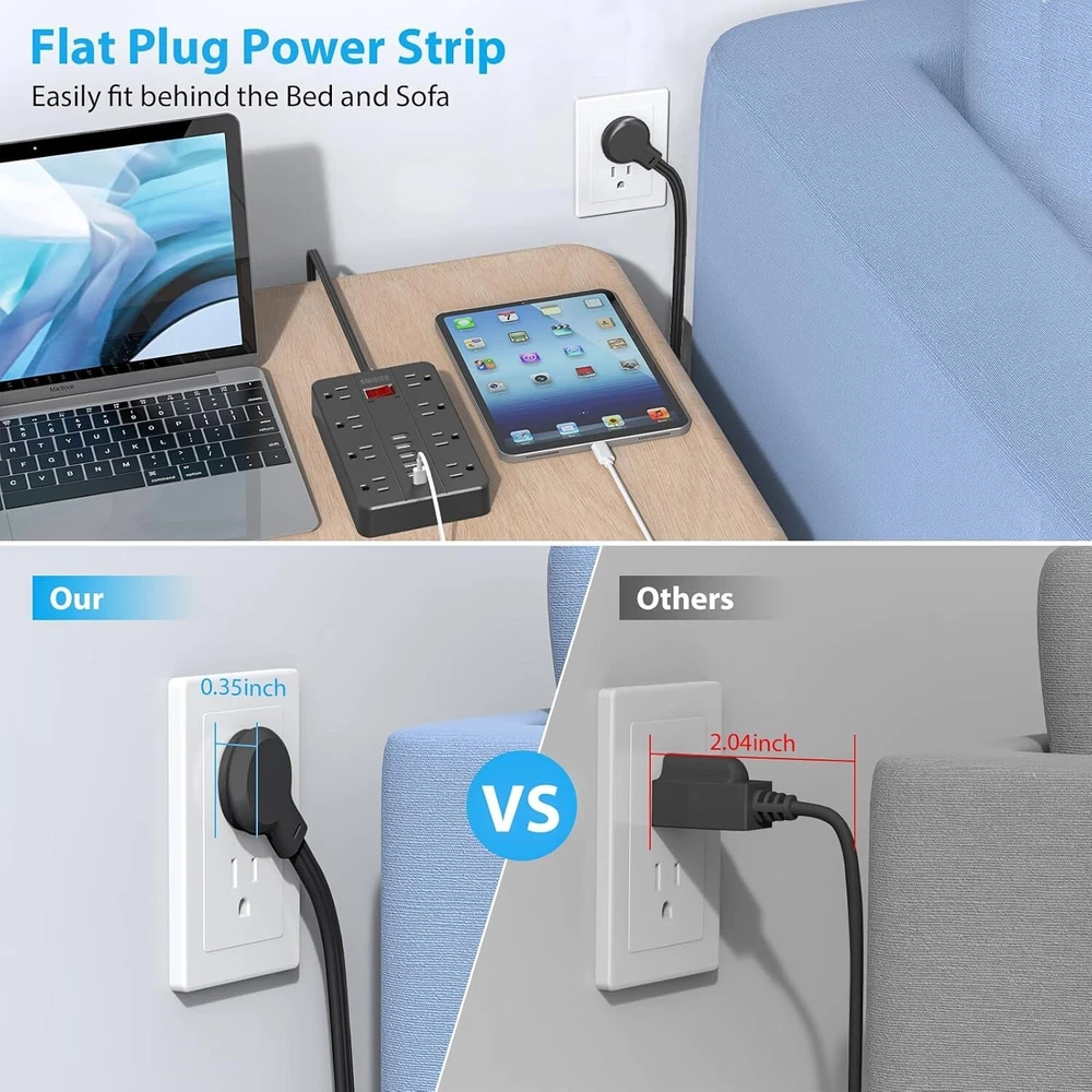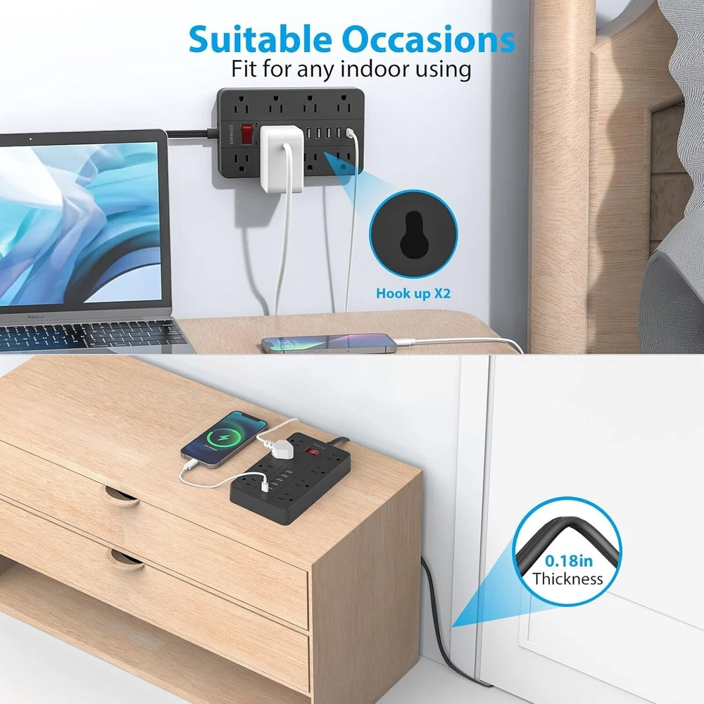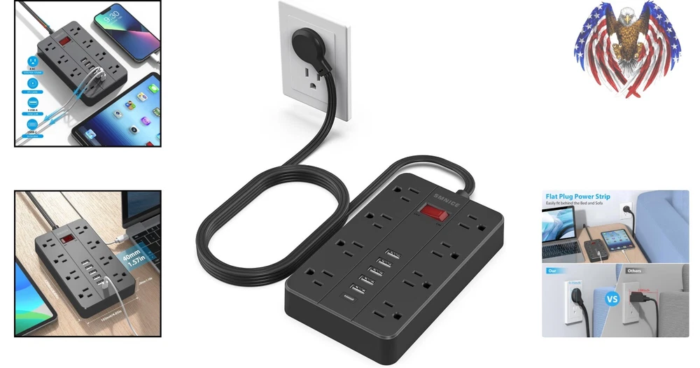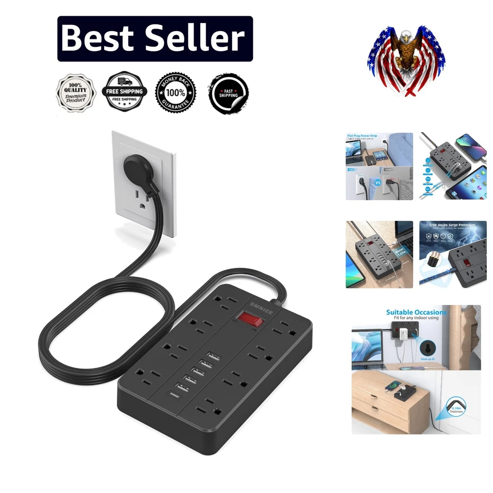 Surge Protector Power Strip with 8 Outlets & 6 USB Ports - Wall Mountable Design ‹ › ‹ › ‹ › ‹ › ‹ › ‹ › ‹ › ‹ › Surge Protector Power Strip with 8 Outlets & 6 USB Ports Wall Mountable Design for Ultimate Convenience Features: Ultra-slim flat plug design (0.35 inch) allows for discreet placement behind furniture or appliances. 2 hook holes for easy wall hanging, providing flexibility in placement on desks or walls. 6 USB ports with automatic device detection: USB A ports charge up to 2.4A, USB C port charges up to 3A. 1080 joule surge protection safeguards sensitive electronics from unexpected power surges. Wide-spaced 8 AC outlets accommodate large plugs without blocking adjacent outlets. Benefits: Effortlessly charge multiple devices simultaneously, from phones to tablets and more. Convenient wall-mountable design keeps your space free from clutter while ensuring accessibility. Integrated circuit breakers and comprehensive safety protections keep your devices secure. Ideal for creating a well-organized charging station in your home, office, or bedside. Why choose our Surge Protector Power Strip? In today's tech-driven world, ensuring your devices are charged and protected is paramount. Our Surge Protector Power Strip combines functionality and elegance with its sleek design, allowing you to maximize space without sacrificing style. With robust surge protection and intelligently designed wide outlets, you can confidently power and charge your important devices all at once. Elevate your charging experience—choose our Surge Protector Power Strip today and enjoy safety and convenience in one stunning package! Shipping Free & Fast Shipping - We offer free shipping to most of the USA with a normal delivery time of 3-7 days. However, due to the current situation, additional delivery time (up to 3 weeks) may be required for some items. Alternative Carriers - We may use alternative carriers (e.g. USPS, FedEx, UPS, etc.) to ensure your package arrives safely and on time. Due to the use of multiple carriers, we are unable to provide a tracking number automatically. Handling Time - Orders are processed and shipped within 1-2 business days of receiving cleared payment. Shipping Restrictions - Shipping to Alaska, Hawaii, Puerto Rico, Guam, and other US territories may incur shipping charges or delivery restrictions. Please contact us before ordering, or your order can be refunded/cancelled. State Restrictions - There may be restrictions based on your state of purchase. For example, certain items may not be shipped to California due to state regulations. Contact for Tracking Updates - If you require tracking updates or have any concerns about the delivery of your order, please feel free to contact us, and we will be happy to assist you. Return 30-Day Hassle-Free Returns - We want you to be completely satisfied with your purchase. If you are not, you can return the item within 30 days of receiving it for a full refund or exchange. Easy Return Process - To start a return, simply contact us and we will provide you with a prepaid return shipping label and detailed instructions. Restocking Fee - There are no restocking fees for returns. However, the buyer is responsible for return shipping costs if the return is not due to a seller's error. Refund Processing Time - Refunds will be processed within 5 business days of receiving the returned item in its original condition. Payment We accept all major credit cards, PayPal, and Apple Pay for your convenience. Your payment information is secure and encrypted to ensure a safe and seamless transaction. Please complete your payment within 3 days of purchase to avoid any delays in shipping. Feedback Your feedback is extremely important to us. We strive to provide the best products and customer service possible. If you are satisfied with your purchase, please take a moment to leave us a positive review. If you have any concerns or issues with your order, please contact us before leaving negative feedback. We are committed to resolving any problems and ensuring your satisfaction. Contact Us If you have any questions or concerns, please feel free to reach out to our customer support team. You can contact us through the eBay messaging system. We are available Monday to Friday, 9:00 am to 5:00 pm EST, and we will do our best to respond to your inquiry within 24 hours. Buy it now and enjoy a pleasant shopping experience! UPC: Not Set Unit Quantity: 15.8 ounces Features: Flat Plug,Wall Mountable,Surge Protection,USB Ports,Integrated Circuit Breaker,Lightning Protection,Overload Protection,Fireproof,Portable Smart Home Compatibility: Not Applicable/Not Available Smart Home Protocol: Not Applicable/Not Available Brand: Unbranded Type: Power Strip Number of Outlets: 8 Plug Type: United States Input Voltage: 125 volts Output Voltage: Not Set Maximum Input Current: Not Set Maximum Compatible Appliance Wattage: Not Set Surge Energy Capacity: 1080 J MPN: Not Set Unit Type: oz Voltage Conversion: Not Set Battery Size: Not Set Color: Black Cable Length: Not Set Recommended Environment: Indoor Material: Plastic Resistance Properties: Fire Resistant Country/Region of Manufacture: Not Set Manufacturer Warranty: Not Set