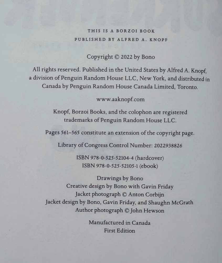 Surrender : 40 Songs, One Story by Bono Illustrator- Copyright/Edition- 2022/Hard Cover 1st Edition Condition- New Dustjacket/Condition- Yes/New Other- New/Mint- Book and dust jacket should be in the same condition as published. Like New/Fine- Book and dust jacket should be without noticable flaws or defects. Very Good- A used book that shows minor wear but has no tears to the binding, book pages or dust jacket. Good - Average used book. All pages must be present.May have light staining, small tears with no tape, minor marking some chipping to spine cover. Fair/Acceptable- A used book that has all the text pages intact but may be missing a title page, end-papers, etc. May be missing dust jacket. Damaged but readable. OTHER •Ex-Library. Former library copy; the should always be noted regardless of the books condition. •Book Club. This edition must always be noted regardless of the books condition. Generally a Book Club Edition (BCE) will be smaller in size and will not have a price on the inside corner of the dustjacket. •Binding Copy. Pages may be fine but the binding is loose or detached. Hello Friends Just a quick rundown of my policies and whatnot past the posted Ebay stuff. First a lot of the items I generally have listed for sale are pre-owned and sourced from various places. I try to describe these items accurately and include any flaws that I can see feel or smell (I am not a super smeller but I try). All items including clothing and cloth items have been washed or sanitized to the extent I can clean them without causing damage. Even so I might miss something. So please inspect the photos before you buy and drop me a note if your concerned or have question about anything. Special note to book buyers... I love books!! That being said I am not an book expert... I know some things but if your a collector and need extra photos or info on specific condition or markings etc, don't hesitate to ask. I want you to be happy with your purchase! Payments are due within seven days of sale in most cases. To avoid unpaid item claims please let me know if you have any questions about payment or if your payment will be delayed. Shipping charges are based on the items weight. Most items will ship within 3 days by USPS and include tracking information. Combined shipping is available based on weight and shipping method (priority, first class, media etc). Free shipping insurance is included on domestic orders over $50. I accept returns on most items. So let me know if there are any issues with your order. Thanks so much! Bronwyne