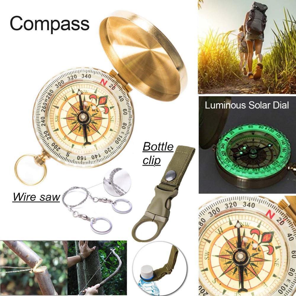 12 in 1 Outdoor survival kit Set Camping Travel Multifunction First aid SOS EDC Emergency Supplies Tactical for Wilderness tool WHAT'S IN THE BOX? 1. 4 in 1 Survival paracord ( Pleast note: As mailing range, there are no flint in the paracord !) 2. Powerful laser pointer: Provides remote indication when calling for help outdoors. The laser range is more than 2000M and the beam is visible, especially at night. 3. Upgrade Compass: 360 degree rotating bezel for easy navigation & orienteering, compass glows in the dark making it easy to read in all weather at any time. 4. Flashlight: with zoomable design, heavy duty, compact handheld flashlights, zoom in for an intense beam or out for wider illumination. 3 light modes like high / low / strobe. with its ultra-bright LED light, and ability to run for hours of just a single AA battery (BATTERY NOT INCLUDED). 5. Heavy-Duty Tact-Pen with Carbide Tip : made from tungsten steel for superior strength & portability, break a window / glass, escape in an emergency situation 6. Emergency Blanket: provides convenient easy protection in all cold or warm weather states. 7. Upgrade Survival Knife: high quality survival knife, great for any use. 8. Wire Saw: used for cutting wood (no more than 3 inches), plastic, bone, rubber and soft metal. 9. Water Bottle Clip: simple and firm way to carry water bottles. 10. Credit Card Knife: credit card sized, easily to fits inside your wallet, pocket. [11 Functions] can opener, bottle cap opener, 4-position wrench, 2-position wrench, butterfly screw wrench, direction ancillary wrench. 11. Whistle: two holes, the sound is more loud. can let the rescue team find you faster 12. Mini Light: small, practical can also be a key ring 13. Compact Durable Waterproof & Shockproof Carrying Case (all the survival tools will be packed in Black Box) :ABS Plastic Durable Water Proof Case to keep your items safe from the elements.Designed to fit into most compact spaces for easy access. Attention : There are a lot of pirate survival box in market, compare the survival box quality as below, we sell the most durable survival gear box now ! - Carry on with you - We've packed this kit into a super compact, discreet, ultra-durable, waterproof and easy to carry case that is the size of a small book. Our kit is compact enough to throw in your backpack, your car, your office drawer or store in virtually any small handy space that you can access quickly! Package Dimensions: 7.1 x 4.8 x 2.4 inches Item Weight: 1 pounds Small size emergency first aid kit with 13 multi tools, easy to carry What You Get: 1 x Multi-function scraper 1 x Emergency tactical pen 1 x Emergency thermal blanket 1 x Tactical torch flashlight 1 x Multi-function compass 1 x Mini keychain light 1 x Tactical military knife 1 x Saber card 1 x Whistle 1 x Wire saw 1 x Survival wristband paracord 1 x Water Bottle Clip 1 x Shockproof case 1 x Laser pointer Dropping are welcome, please contact me for any question. Shipping: All orders will be dispatched within 24 hours once confirmed you payment. As international shipping is affected by many factors: customs, flights, weather, war, trade, policy, etc, some shipment do get delayed sometimes, if you have not received your shipment after the expecting working days, please contact us, we will track the shipment and get back to you ASAP. Payment: We currently accept Aliexpress payment. We can ship the parcel to your aliexpress address, please noted other address if you want. Feedback: Your satisfaction is our main goal and your feedback is very important to us. We want our customers to be 100% satisfied with their order. when you receive your order, please take a moment to leave us positive feedback and 5 star rating to us is appreciated, it is vital and very valuable to the continued success of our business. If you are not satisfied, please email us before leaving neutral feedback and negative feedback, and please give us 1 business days to resolve your complaint.your full satisfaction is our duty. Return: All items will be checked carefully and packaged in good condition. We offer 14 days dead on arrival replaycement warranty from the date of receipt. About us: We guarantees all our customers would be satisfied with our product. If you are not satisfied, we will try our best to make you pleased on your purchase. Contact us: If you have any questions, please do not hesitate to contact us in Aliexpress. Emails are normally answered within 12 hours. We work hard to keep our feedback positive. We always provide timely responses to emails and strive for a superior customer experience.
