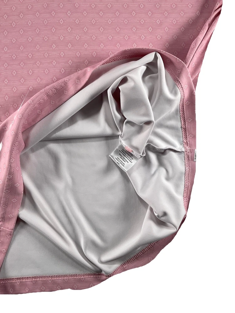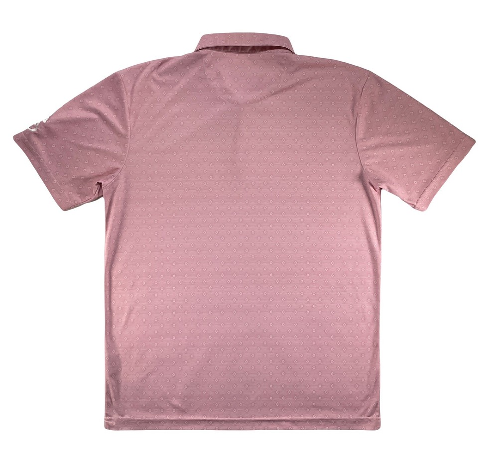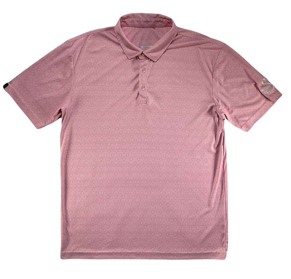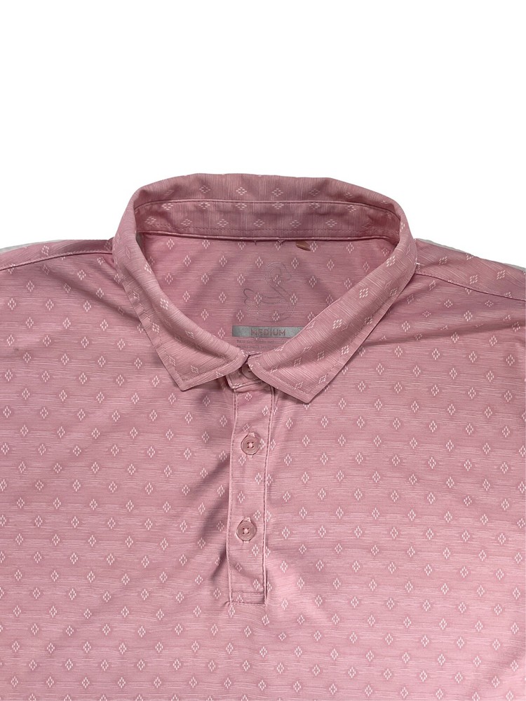 Swannies Golf Eddie-B Polo Southwestern Diamond Tech Stretch PGA Players Pink M Preowned - Excellent Used Condition This Is A PGA Tour Player's Sponsored Polo Worn On Tour With Swannies Logo On Shoulder Dry Cleaned Only Size - Medium Color - Flamingo Armpit To Armpit - 21.5" Fly Active: Lightweight, breathable, easy care, max stretch Three button placket Collar stay Full stretch Durable performance fabric REPREVE recycled water bottle fabric 100% REPREVE Polyester
