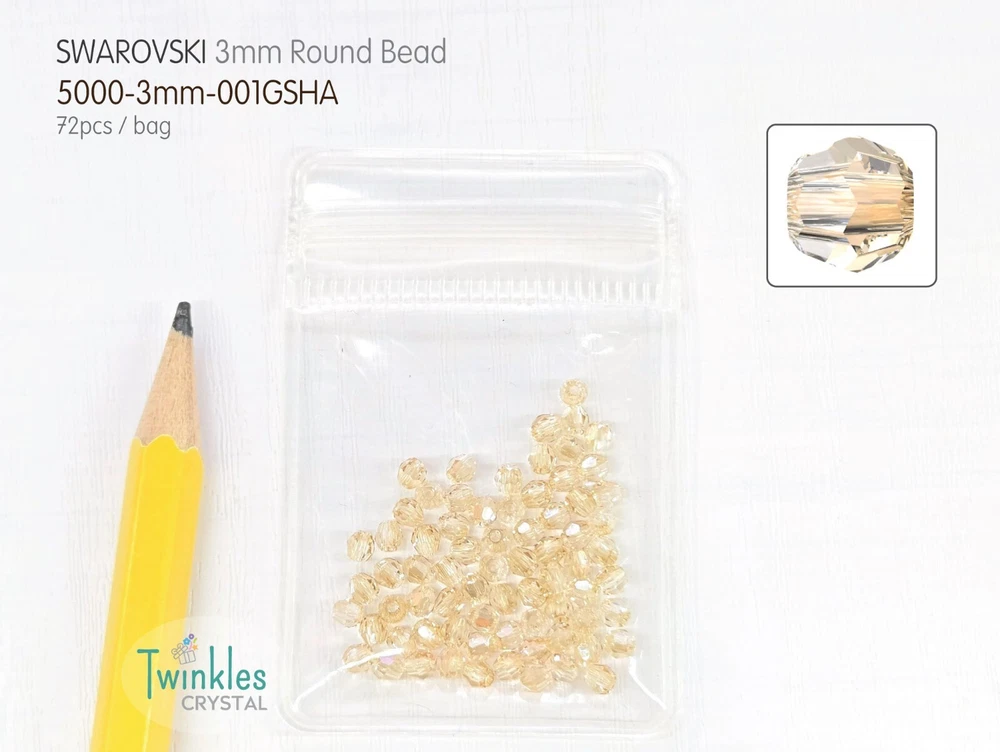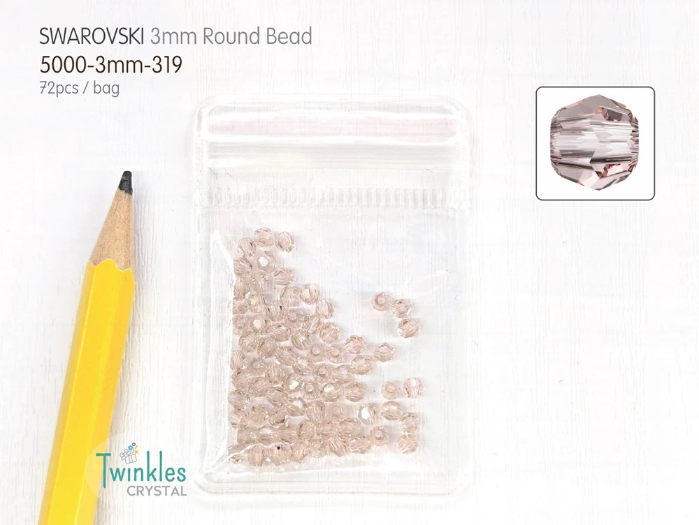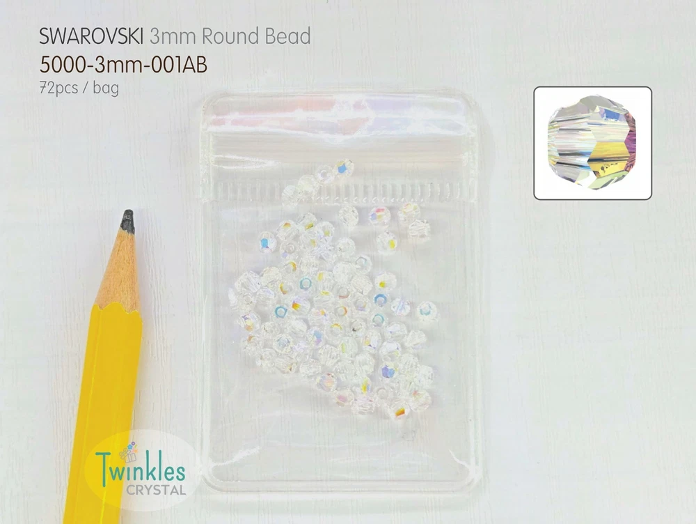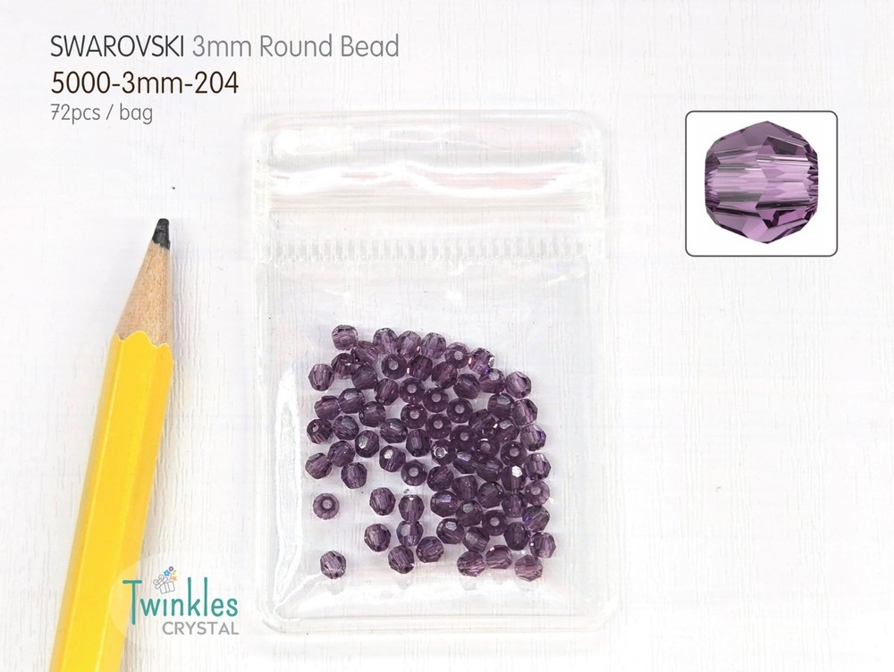Swarovski Crystal Beads Round Beads Item No: 5000-03-Color Item Name: Swarovski Classic Bead Color: U Pick Condition: Brand New Brand : Swarovski Beads Shape : Round Beads Bead Size : 3 mm Bead Hole: 0.8mm Package : 72pcs in Zip lock Bag Weight: 10 grams Made in Austria ** We guarantee the style is the same as shown in the pictures ** We accept returns within 30 days in original condition