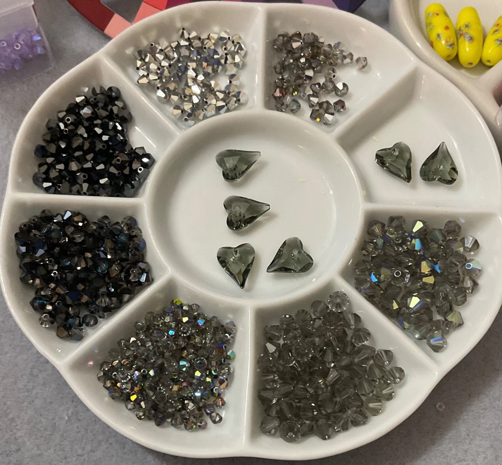 Absolutely stunning Swarovski beads! The mix of sizes and finishes adds so much versatility to my jewelry projects. The black diamond and heart shapes give a luxurious, elegant touch, and the storage tubes keep everything organized. Perfect for creating eye-catching designs with a high-end feel. Love the quality and sparkle—worth every penny!