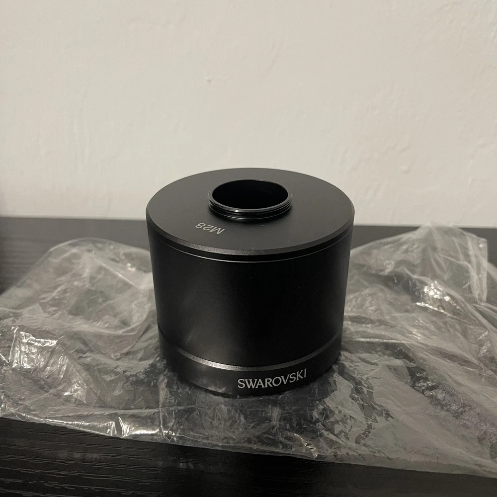 NEW open box // box of was opened but has original packaging & has never been used. NO MANUAL. - Fits Cameras with 28/37/43/52mm Filters - Useable with SLRs with 50mm Lenses The Swarovski DCA Digiscoping Adapter allows you to digiscope with your Swarovski spotting scope, using either a digital point and shoot camera with a 28mm, 37mm, 43mm or 52mm filter specification or an SLR camera and a 30-50mm lens with 52mm filters. In both cases, you capture images through the spotting scope's eyepiece. In addition to the specified filter sizes, you can also use step-up rings and even step-down rings to adapt your lens' filter size to 28/37/43/52mm.