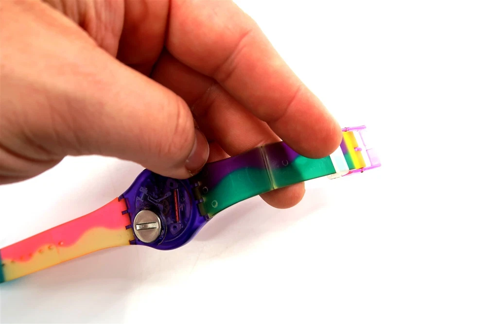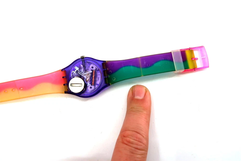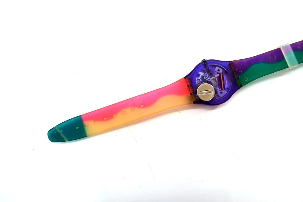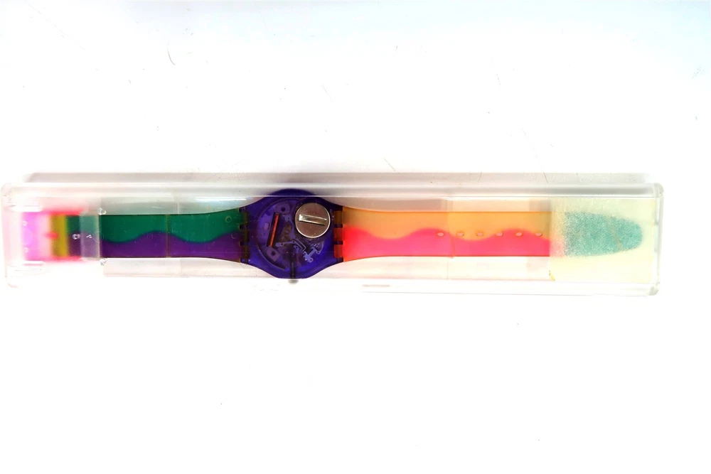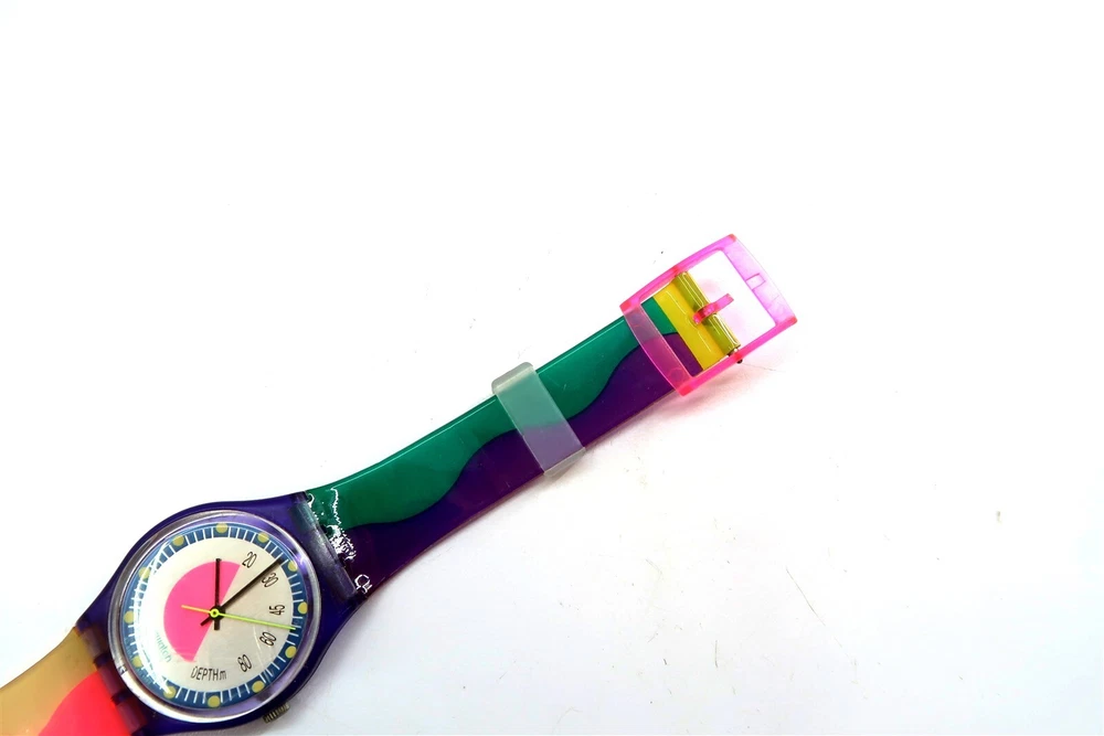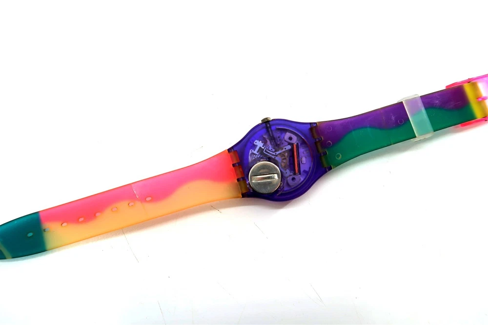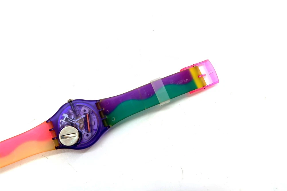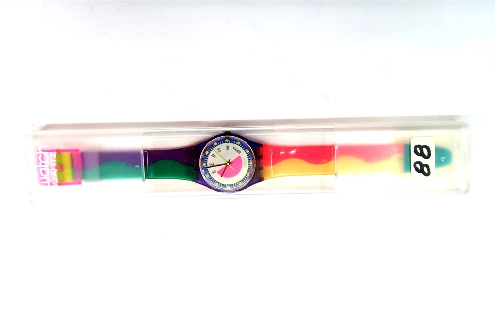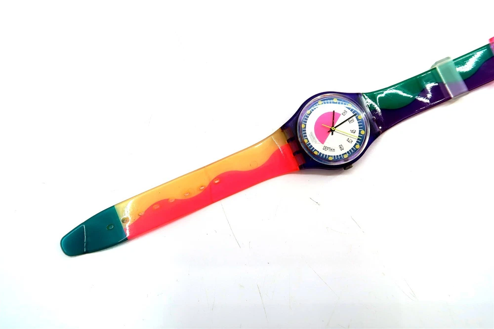 Swatch Watch SCOOB-A-DOO GV102 WORKS BUT HAS A BROKEN BAND PARTS OR REPAIR 1990 This eBay listing is for a New Old Stock classic SWATCH WATCH that comes as you see pictured in the listing and noted above. This watch is brand new and never used before and comes with the original case but no paperwork...but it does have some ISSUES!! I tested this Swatch out and it works just fine ...BUT....PLEASE NOTE - THE BAND DOES HAVE A CRACK (SEE PICTURES OF ME POINTING THIS OUT). This is being sold AS-IS, PARTS OR REPAIR ONLY WITH NO RETURNS. Swatch name : SCOOB-A-DOO Model : GV102 New Battery : Yes Features/Notes : Year is 1990. PLEASE NOTE : This watch is brand new and never used before and comes with the original case...but...IT HAS A CRACKED BAND!! PLEASE SEE THE PICTURE WHERE I'M POINTING THIS OUT!! This is being sold AS-IS, PARTS OR REPAIR ONLY WITH NO RETURNS. The watch is in otherwise unused/mint condition. Seller Location Reference - Box 57 BID IN CONFIDENCE – CHECK MY FEEDBACK! My goal is your satisfaction. I leave positive feedback right after the payment is received for all orders!! If you plan to leave anything less than positive feedback and 5 stars - please let me know so that I can work out any problems that you may have. I aim to please!! SHIPPING & HANDLING FOR US BIDDERS We ship ASAP upon payment as noted above within 1 business day 99% of the time!! We normally pack up your new treasures 2 - 3 times a day and ship using USPS and Fedex Ground so that you get your items in a timely fashion. As always - there is no charge for local pickup on any of my items!! SHIPPING AND HANDLING FOR INTERNATIONAL BIDDERS Import duties, taxes and charges are not included in the item price or shipping charges. These charges are the buyer’s responsibility. Please check with your country’s customs office to determine what these additional costs will be prior to bidding/buying.” THANK YOU AND HAVE A WONDERFUL DAY!! Powered by SixBit's eCommerce Solution