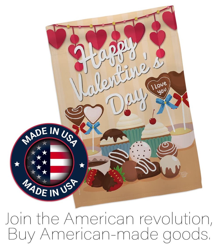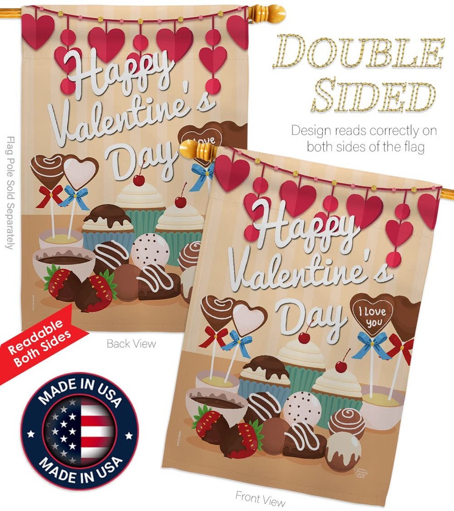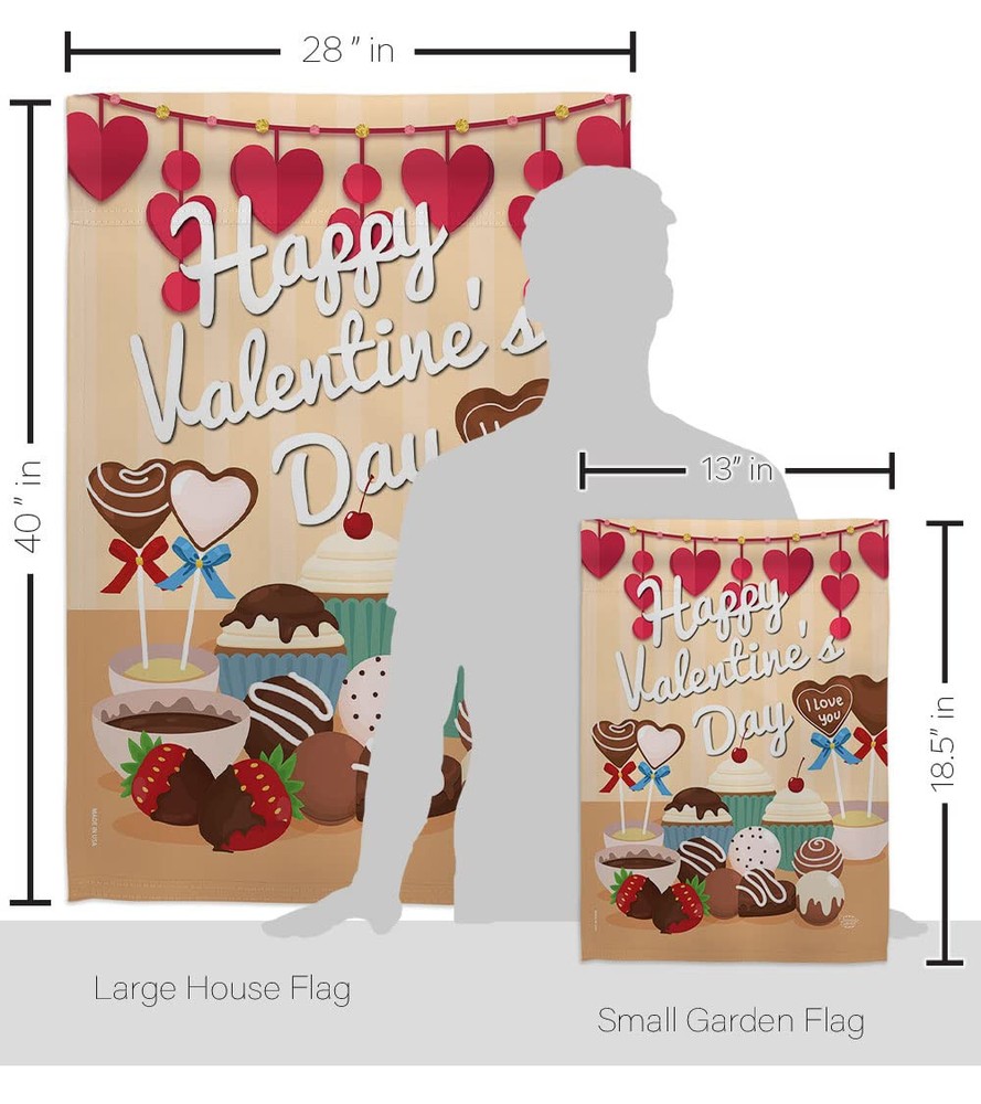 Valentines Beautiful Matching Large House Mini Garden Flags Set have variety of Flags Set for all occasions. Uniquely design for hanging indoor or outdoor use. We are committed to offering you exceptional values. Our customers enjoy displaying our Flags Set for longer periods. Specification: Theme: Valentines Size: House 28" X 40" Size: Garden 13" X 18.5" Print: Double-Sided Readable: Readable Both Sides Material: Weather Resistant 3 Layers Blockout Stitching: Double Stitched Display: Vertical Hang Type: Sleeve Artist: © Molly Will Special Features: Origin: Made In USA 92053 Package Include: 1 pc x Large House 28" X 40" 1 pc x Mini Garden 13" X 18.5" For more than a decade, we’ve been dedicated to manufacturing flags with no comparison in quality and beautiful designs. Our flags are made with our Pro Guard material that is soft to the touch and designs can be read correctly on the flag. A feature that our customers will love. We are committed to using eco-friendly inks that won’t leave a foot print in our environment. MPN: OC-VA-S-192053-IP-BO-D-US17-OC 92053 92053
