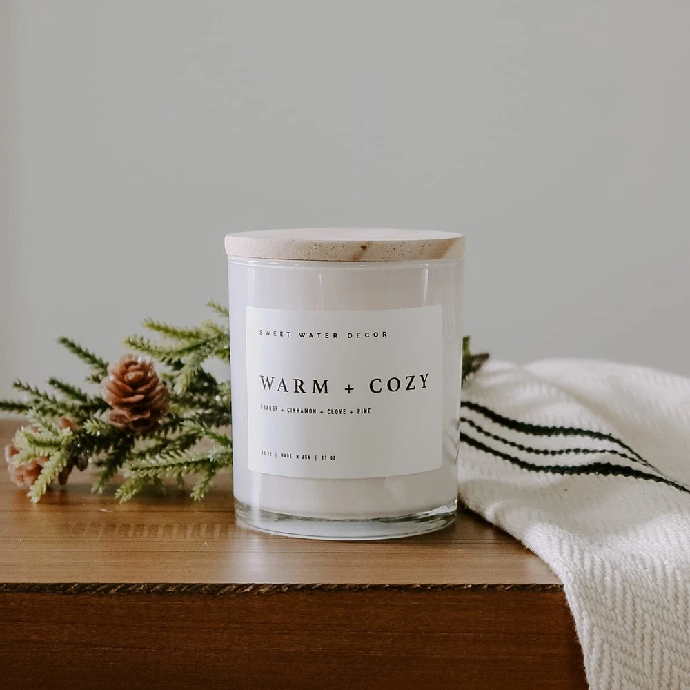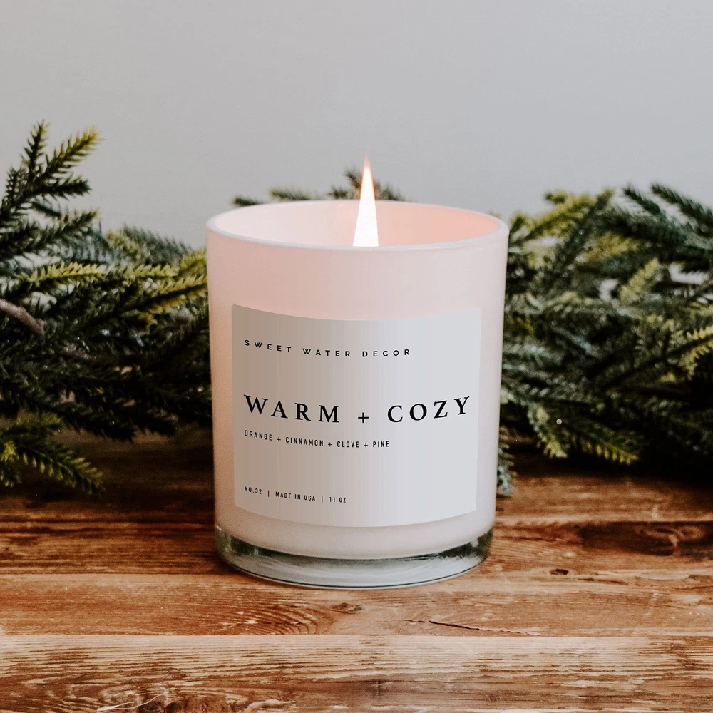 SCENT NOTES: Orange | Cinnamon | Clove | Vetiver | Pine CANDLE INFO: 11oz White Candle Jar with Wood Lid | Jar Size: 3 x 3 x 3.5" | 50+ Hour Burn Time CANDLE CARE: Trim your wick to 1/4" before candle is lit each time to prevent soot. Burn candle so wax pool reaches the jar edge each time to prevent wax tunneling. Burn candle no more than 4 hours at a time. Do not burn candle with less than a 1/2" of wax remaining. Keep candle away from fans, open windows, hot surfaces, children, pets. Never leave a burning candle unattended PERFECT GIFT: If you love this winter candle, share the love and give the perfect gift for mom, sister, co-worker, friend and everyone in between. If you need a Christmas gift, birthday gift or even housewarming gift, look no further. STYLISH: Our soy candles are not only functional, but stylish! They can blend in with any home decor style from rustic, to modern, to farmhouse. They are the perfect home accessory that happen to be some of the best smelling scented candles!