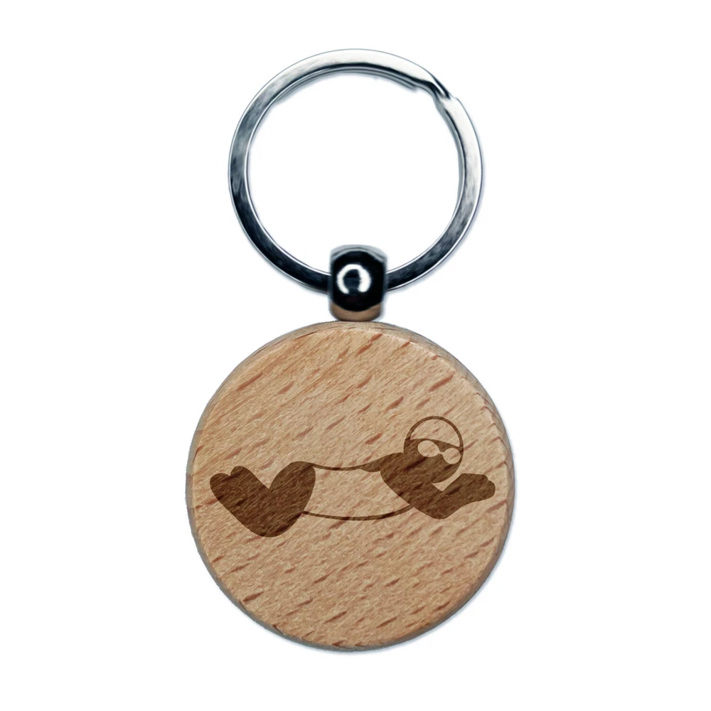 Swimming Swimmer Breaststroke Engraved Wood Round Keychain Tag Charm
