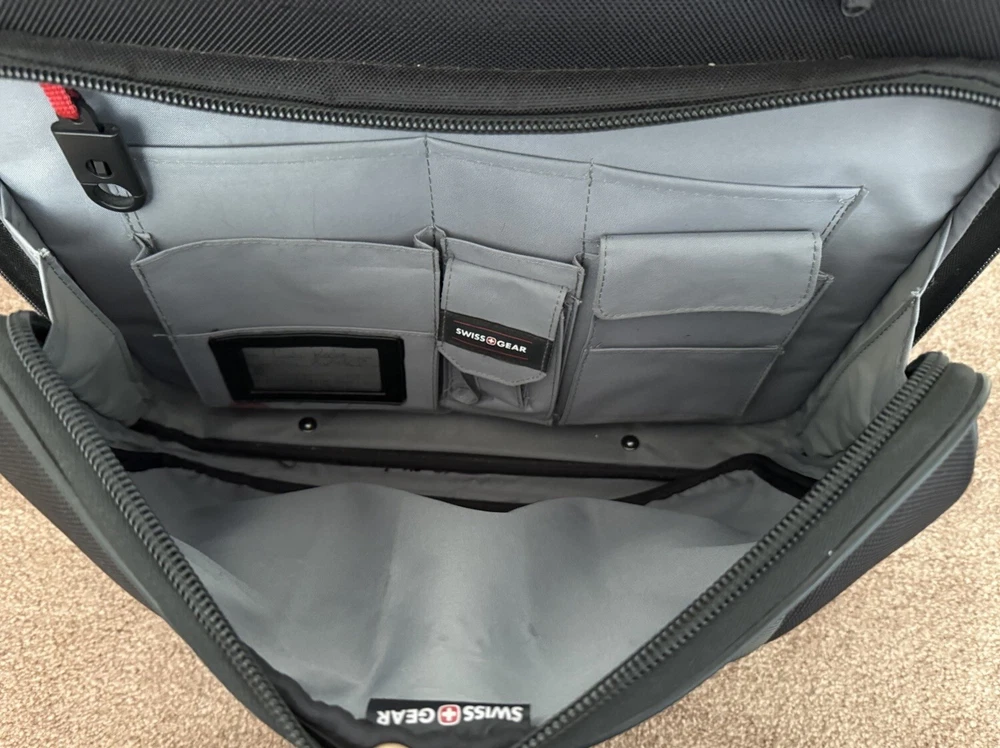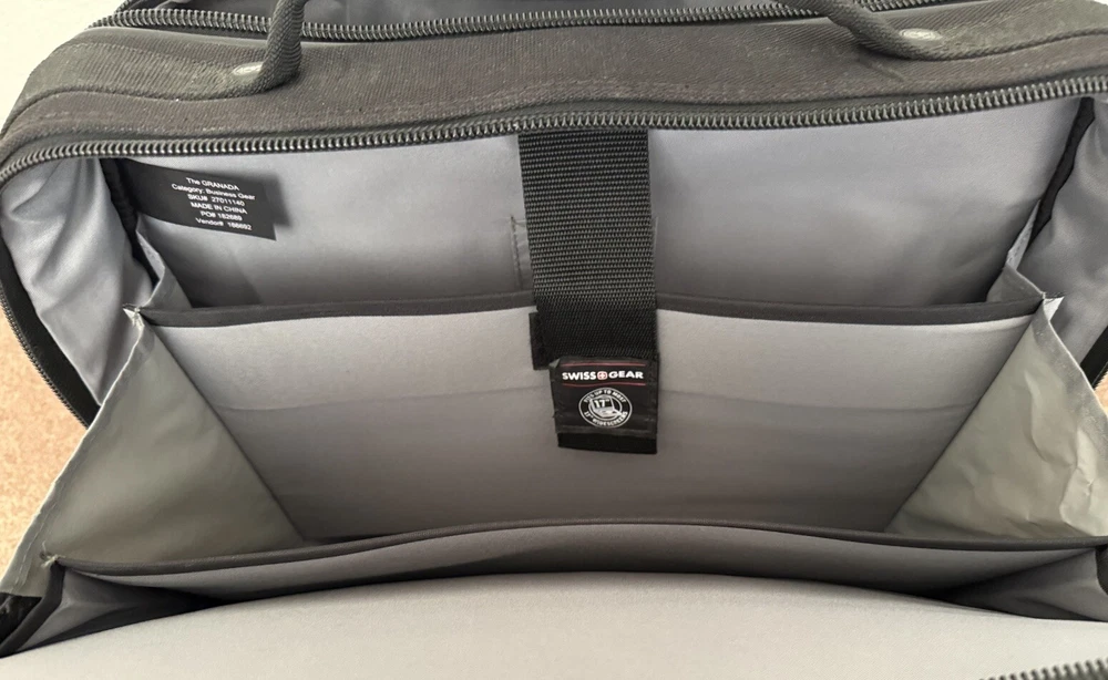 gtin13:Does not applyGender:Unisex AdultMaterial:NylonBrand:SWISSGEARCountry/Region of Manufacture:UnknownMPN:naUPC:Does not applyColor:BlackType:SuitcasesFeatures:Carry On, Laptop Compartment, Soft Case, Wheels/Rolling, Compartment for clothesSize:17"Pattern:Solid