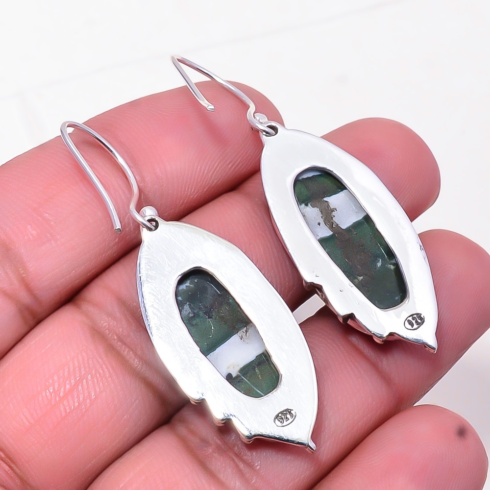 Theme Beauty Main Stone Depth As Seen in Picture Main Stone Length As Seen in Picture Main Stone Width As Seen in Picture Seller Warranty Yes Shape As Seen in Picture SKU E_10182_1004_21 Main Stone Cut Type Cabochon Antique Yes Handmade Yes Type Earring Style Drop/Dangle Metal Sterling Silver Metal Purity 925 Parts Per 1000 Base Metal Sterling Silver Total Carat Weight 37.5 Ctw Main Stone Swiss Green Opal Main Stone Creation Natural Main Stone Color Green Main Stone Treatment Natural Material Gemstone, Stone Number of Gemstones 2 Item Length 1.87" Features Engraved, Nickel-Free, Handcrafted Ear Area Lobe Brand Unbranded Country/Region of Manufacture India Country of Origin United States Color As Seen in Picture Diamond Clarity Grade Not Applicable Number of Diamonds As Seen in Picture Item Diameter As Seen in Picture Gemstone Clarity Grade Opaque Diamond Color Grade Not Applicable Customized No Colored Diamond Intensity Not Applicable Certification 100% Genuine Guaranteed Setting Style Bezel Occasion Christmas, Birthday, Anniversary, Engagement, Wedding, Valen Shipping & Handling - Charge - 1st item-5.90 And Additional item-1.90 Handling Time - 1 Days . Delivery Time - 2 TO 3 DAYS. Shipping Service - USPS First Class Package 2 -3 Days. Returns - 1.We offer a 100% Money Back Guarantee minus shipping for 30 days after receiving the Item / item's. 2..The item must not be altered or damaged in any way shape or form. 3.Upon receiving these items your payment will be refunded. 4.Email us for return instructions before sending merchandise back. 5.Please allow up to 1 business day for all returns to receive credit. 6.Sizing does not affect the return policy. Payment - We accept PayPal for Payment ,should made with in 14 days once buying or winning done , in case of late information expected .