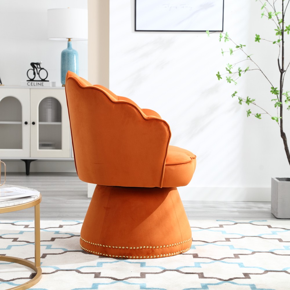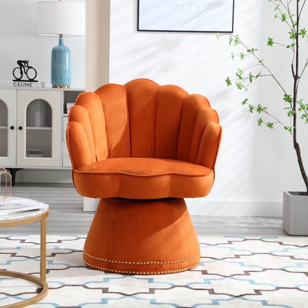 This swivel barrel chair is a game-changer for any space! The plush velvet upholstery feels luxurious, and the 360-degree rotation makes it so versatile—perfect for lounging, reading, or even as a stylish accent piece. The compact size fits nicely in small areas, yet it’s surprisingly roomy and supportive. The bold orange color adds a fun pop to my living room, and the smooth swivel mechanism is a nice touch. Great for homes, offices, or even hotels—such a cozy, stylish upgrade!