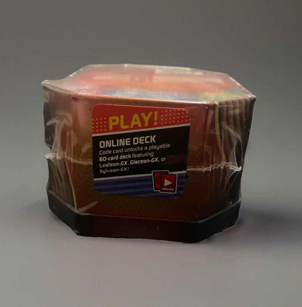 The "Sylveon GX Pokemon Evolution Celebrations Tin" from 2018 features Glaceon, Sylveon, and Leafeon characters from the Pokémon TCG Evolutions set in English. Manufactured by Nintendo, this booster box contains a single box with Sylveon GX card and other Pokémon cards. The item is sealed, ensuring the contents are brand new and untouched. It is designed for ages 6 and up, making it suitable for younger Pokémon fans to enjoy collecting and playing with the cards. Slight dent on the tin front. Sealed and in excellent condition, perfect for both new and experienced collectors. If you have any questions about the product, feel free to reach out! I’ll respond as soon as I’m available.