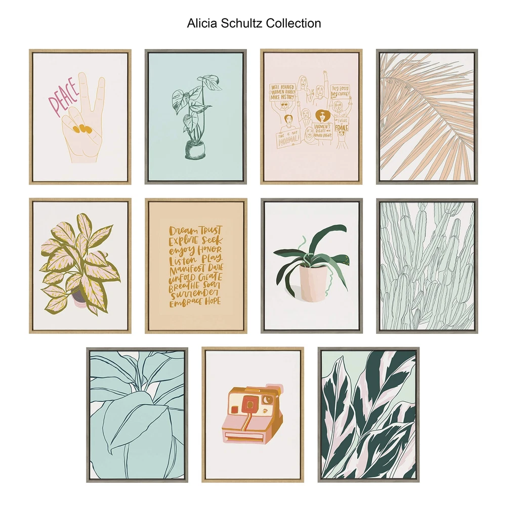 Add a chic, art print that embraces a natural subject in a 80s color palette to your home. Framed in the USA in Waunakee, Wisconsin, this floating canvas art will be a pleasure to look at every day in your living room, bedroom, office, or any room in the home that could use an extra pop of color. Printed on gallery-wrapped canvas and framed with a lightweight polystyrene frame, this wall art has hangers already attached to the MDF back for easy wall display. The outer dimensions are 24 inches tall by 18 inches wide by 1.63 inches deep. Print Name: “Together” TRANSITIONAL CANVAS WALL ART: Plant leaf art on framed high quality gallery-wrapped canvas. Display dimensions are 18 by 24 inches QUALITY MATERIALS: Printed with UV-resistant inks to provide increased durability and fade resistance EASY TO HANG: The frame is made with a premium lightweight polystyrene and has metal sawtooth hangers already attached to the back LOCALLY FRAMED: Gallery wrapped canvas is printed and hand framed in Waunakee, Wisconsin, USA of domestic and imported parts ARTIST DESIGNED: Print "Together" 2020 Alicia Schultz. Vine and Thistle