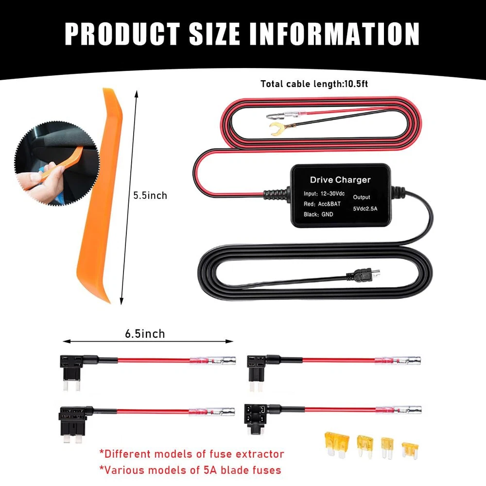 Specification: Material: ABS Quantity: 10 PCS Color: Black Weight: 0.27 lb Input Voltage: 12-24V Output Voltage: 5V Max Power: 10W Fit Type: Universal Fit Why should you choose this product? -No need for cable from car cigarette lighter socket, replace it with a permanent cable. -Your property is under surveillance no worry about collisions ,theft and scratch anymore. -It comes with ACZ(), ACS(mini), ACN(LP-mini) and ACU(ATO) fuse adapters for you to use whatever your vehicles fuse box requires. -Installation in minutes with little to no expertise required. 【Package Includes】: You will receive 1 car recorder power supply, 1 pry, 4 16AMG fuse tap cables and 4 5A chip fuses. The dash cam hardwire with the most popular fuse types will meet the applications for most car models. This set gives all you need to hard wire a dashcam. 【High Secure Standards】: Input: 12V-24V, output: 5V 3A / build in dynamic IC charge IC & magnetic ferrite to prevent electro-magnetic shock, low voltage and overcharge protection, overall 10.5ft hardwire kit can be installed basically on all vehicles. Input length: 3.2ft, output length: 7.2ft. 【Easy Installation】: First, open the fuse box, find the correct fuse slot for your hardwire kit. Second, plug the add-a-circuit into the fuse box in the correct orientation. Then slip the black wire under a metal bolt or screw in your vehicle. Third, power up and test the car recorder and lay out the alignment. 【Low Voltage Protection】: It has a smart low voltage protection system that will automatically shut off the power to your dash cam. When your car's voltage is lower than 11.7V or 11.6V, it will automatically turn off the power. It can protect your car battery more effectively. 【Universal Fit】: This hardwire kit accepts voltage from any type of vehicles runs on 12-24V, works perfect for car, truck, bus, suvs for continuous power. It is with all mini USB dashcams, GPS navigators, radar detectors, etc. It always frees up the cigarette lighter for other devices.
