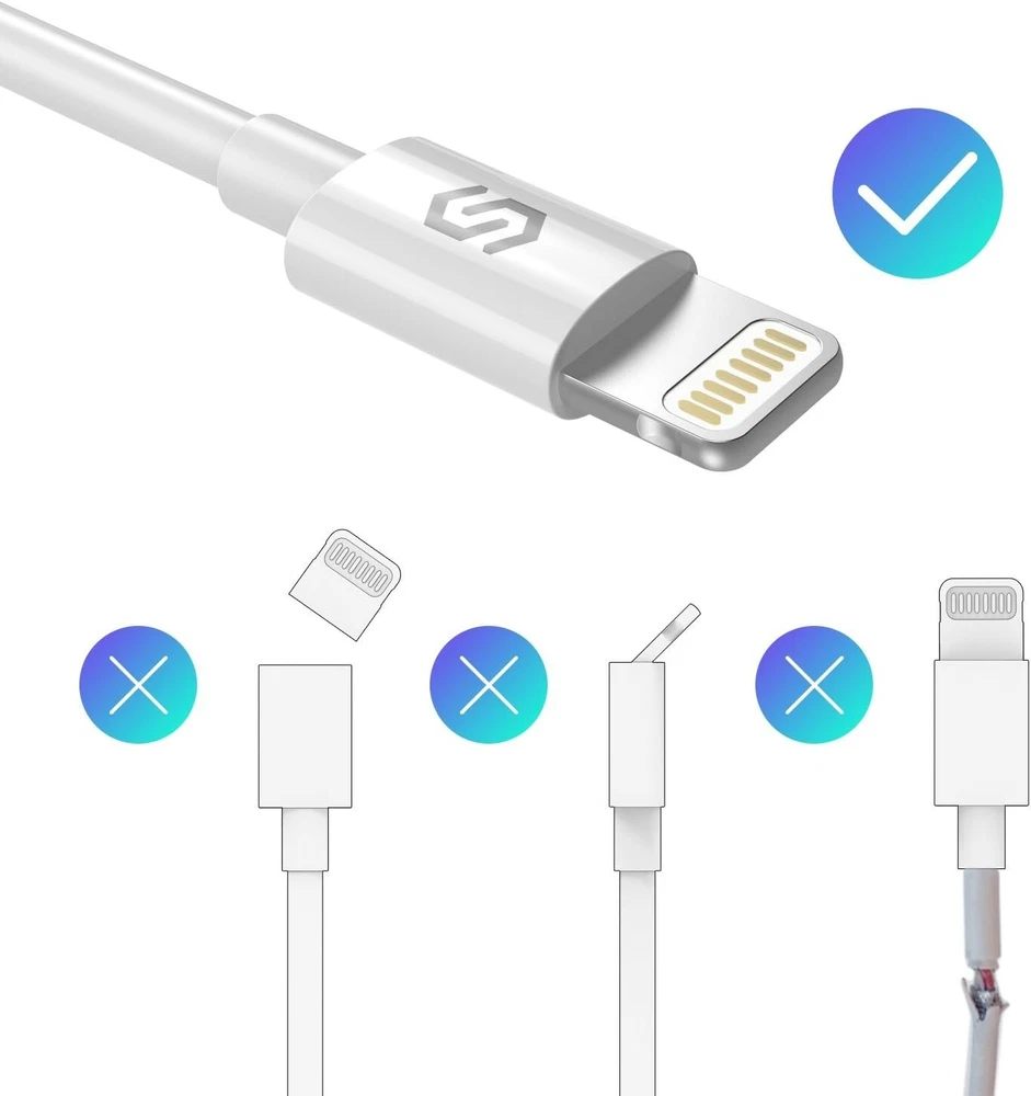 $16.99 MSRP each $33.98 MSRP for a pair NOTE: You are buying two cables here for less than the price of one. About this item Certified safe: Approved for MFi, UL-FCC-CE certification and strict quality control ensure that your Apple devices are loaded and charge safely at maximum speed. No warning message pops up. Fast Charging and syncing: original 8 Pin connector with a Lightning end. Enjoy Lightning-fast data transfer, syncing, and charging. It supports ultra-fast charging (2.4A current), which can be 20% faster than cables without the original Apple chip. Perfect Compatibility: using Apple's original C48 terminal and smart chip, this mfi-certified cable is fully compatible with Apple devices with a 8-pin Lightning port such as iPhone 11/ 11 Pro/ 11 Pro Max/ XS/ XS Max/ XR/ X/ 8/ 8 Plus/ 7/ 7 Plus/ 6S/ 6S Plus /6 Plus/ 6/ SE/ 5S/ 5C/ 5, iPad Air, iPad mini, iPad, iPad Pro, iPod Nano, iPod touch etc. Strengthened construction: designed and built with only premium materials, it has been tested to withstand at least 12000 cycles of 95 degree bend and 10000 plugging and unplugging lifespan which is 12 times stronger than original device cables. Seamless laser-welded connector can even withstand 15kg exterior force without breaking off.