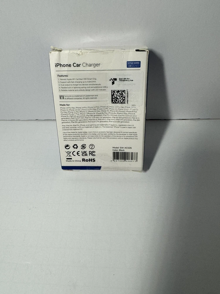 Syncwire iPhone Car Charger - Upgrade [Apple MFi Certified] 4.8A/24W