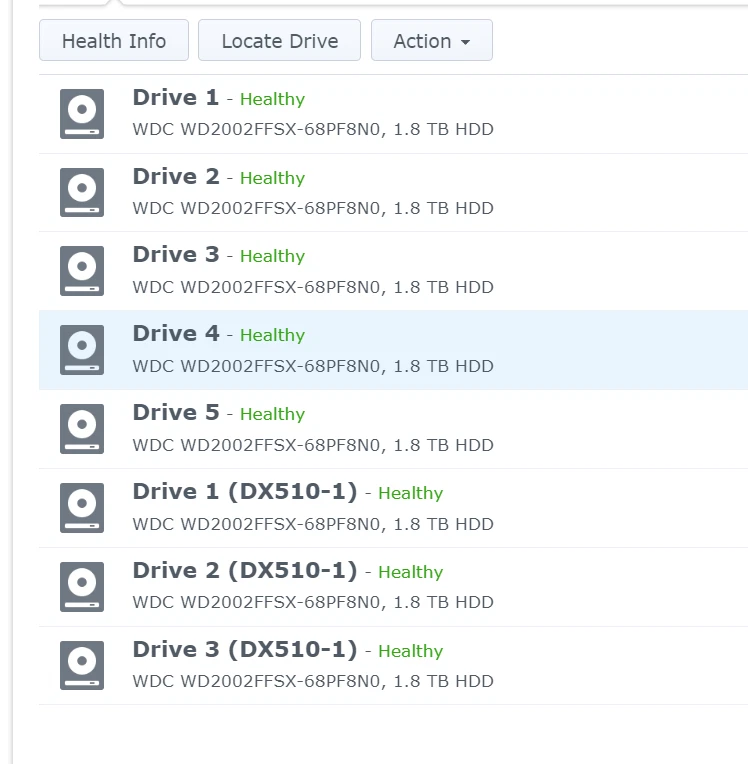 This was my personal NAS device, but honestly I never used it. It's extremely fast and it has a DX510 shelf attached for a 10 disk capacity total! It has 8 upgraded Western Digital Red Pro NAS hard drives (model WD2002FFSX) for a total usable space of 12.60TB using Raid 5 (with data protection) for the Raid type! Using the package center you have a LOT of packages that you can install to run your home network. Some of the packages include a DNS server, LDAP server, and a Plex server running directly on the Synology device. This is an incredible machine for home or small office use. The packages that are available make this a very versatile machine! I am selling this as is, so if you have any questions please don't hesitate to ask ahead of time. Thanks again for viewing. AI Generated Text -> Introducing the Synology DiskStation DS1511+ 5-Bay NAS Server with 5 WD 2TB Red Pro NAS Drives! This powerful network attached storage solution offers a variety of features, including cloud storage, hot plug support, hot swap, removable drive cartridge, secure encryption, media player, and remote access. The server is designed to support HDD drive types and has a storage capacity of 2TB. The Synology DiskStation DS1511+ is perfect for professionals who need to store and share large amounts of data. With its Ethernet interface, it is easy to connect to the internet and share files securely. The server also comes with a variety of drive types, including HDD, SSD, and NAS, making it a versatile solution for all your storage needs. Get started today with the Synology DiskStation DS1511+!