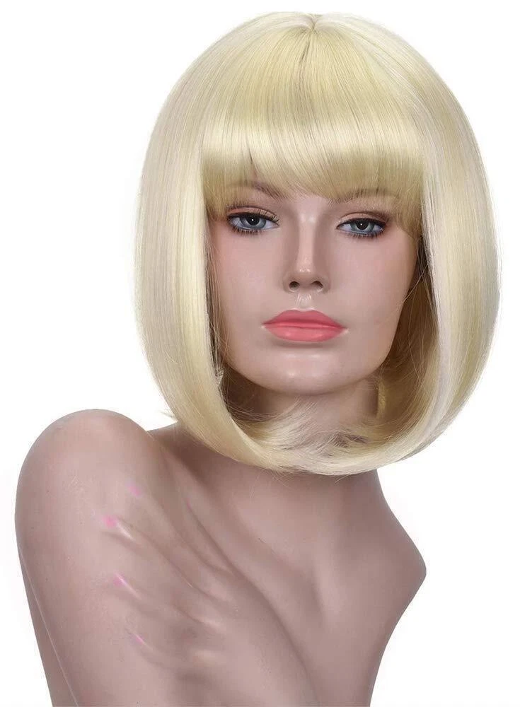 Blonde Straight Synthetic Wig with Layers and Bangs Heat Resistant for Women