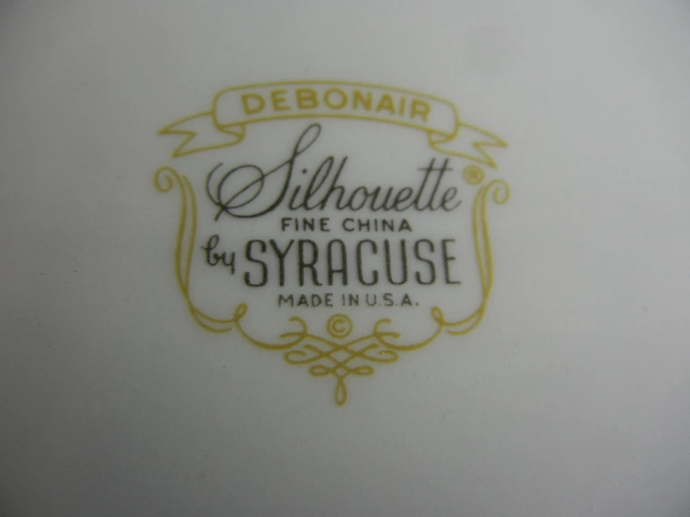 Manufacturer: Syracuse China - Made in America Pattern: Debonair - gold trim Item: Salad Plate Size: 8 1/4" diameter Condition: Very good, no chips or cracks, a few very minor utensil marks on some plates Shipping for domestic and Canadian rates can be found in the item description. We will ship international and rates will be determined by location.