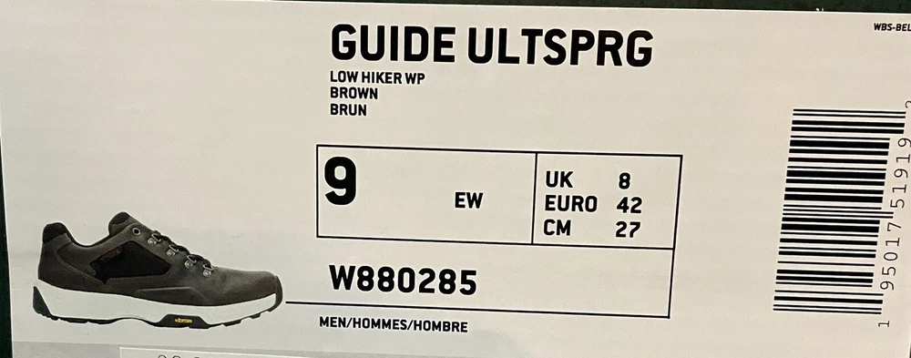 Brand new no shoebox Size 9 EW width, Wolverine Guide UltraSpring Low Hiker Waterproof , color Brown, Men low top Boots W880285 Comfortable and stylish outdoor shoes for everyday footwear