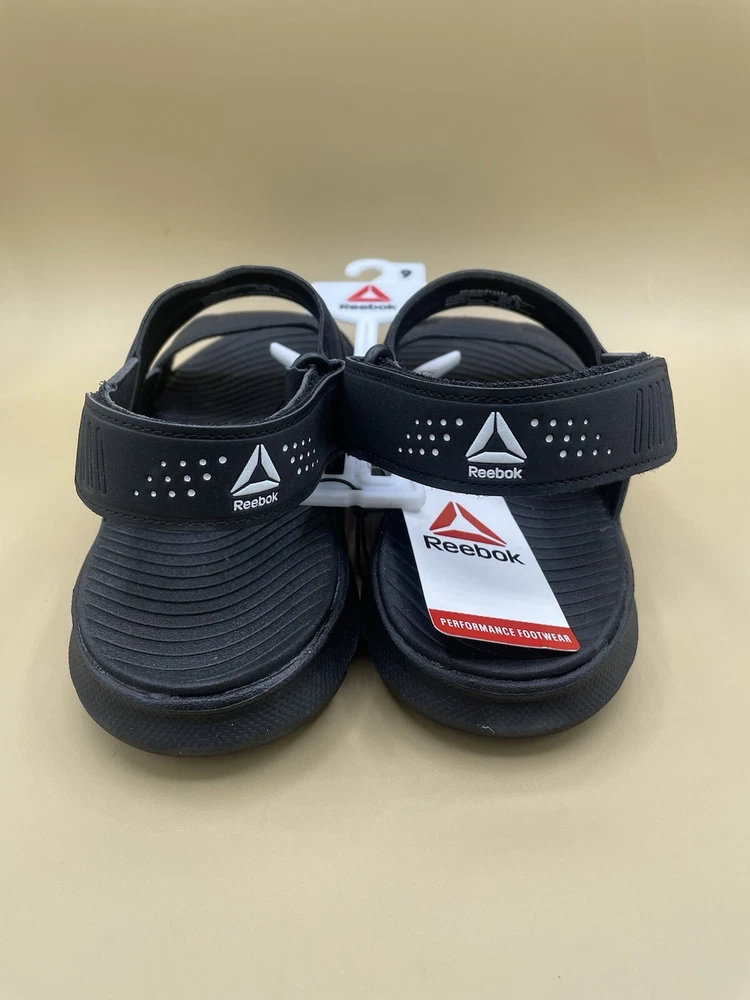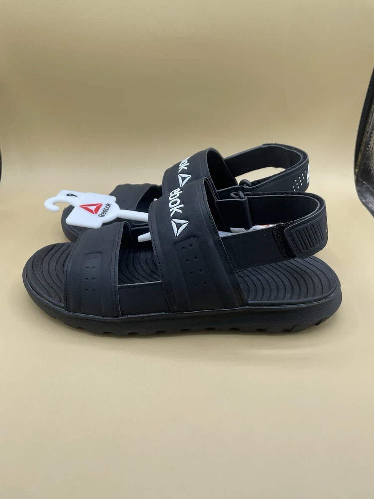 New with tag attached, No Shoebox EVA Comfort Footbed Lightweight Construction Black color. Water friendly Reebok Women’s athletic Sandals for everyday beach/pool footwear.