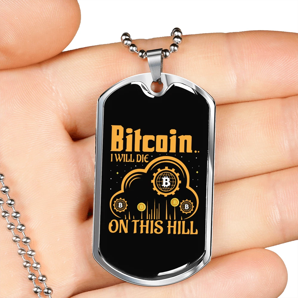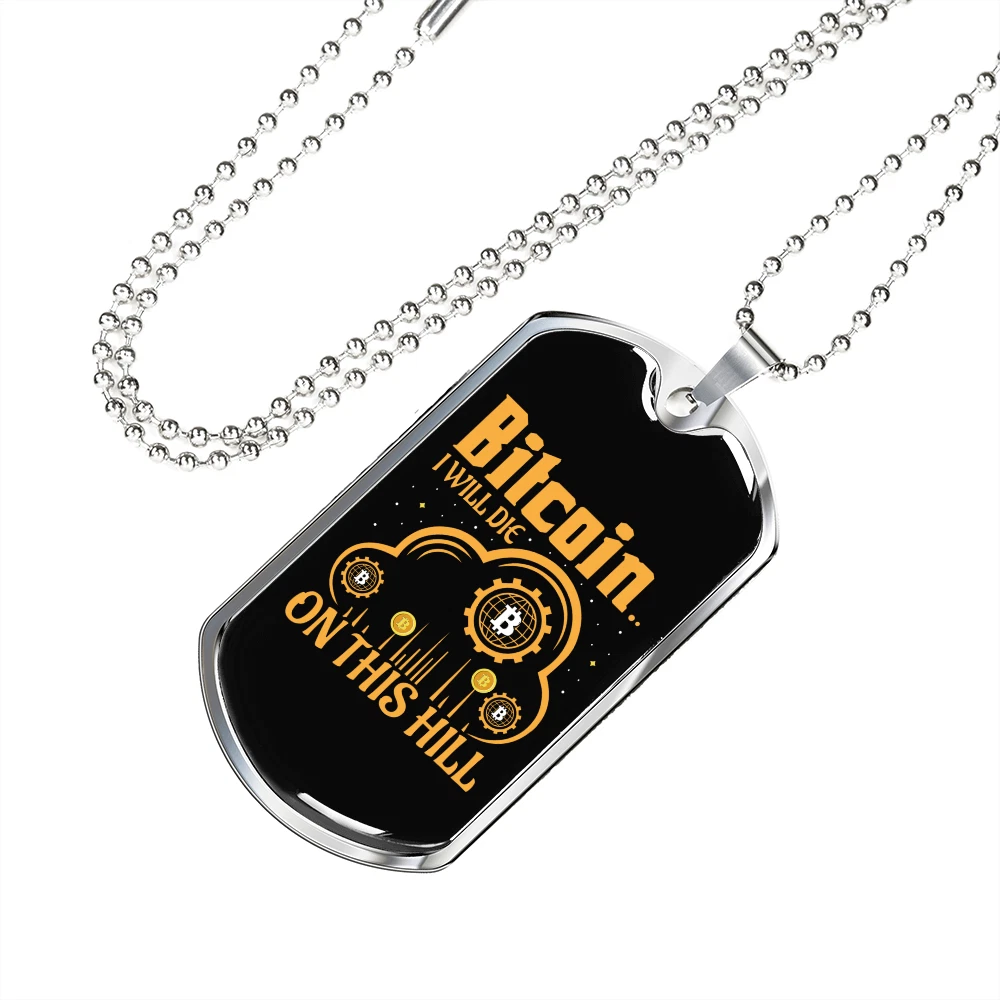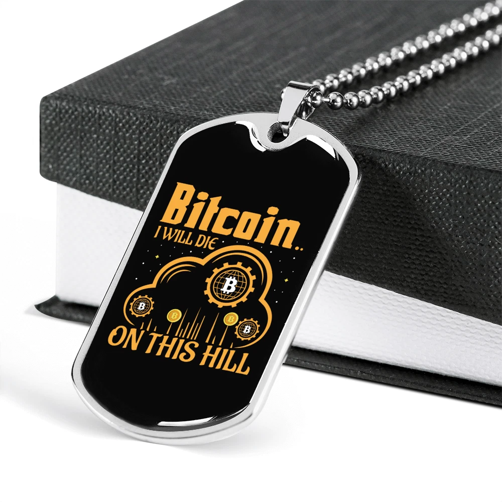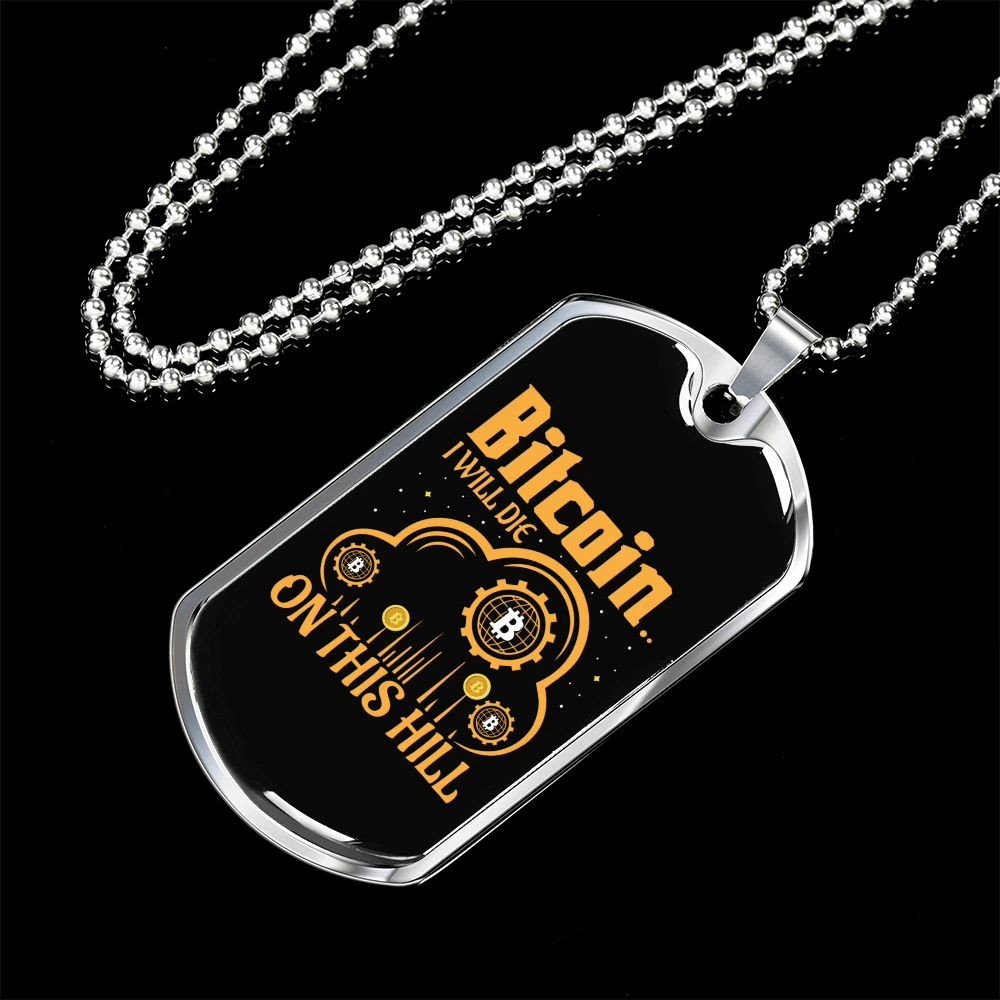 Base Metal: Stainless Steel Country/Region of Manufacture: United States Chain Type: Ball Pendant Shape: Dog Tag Theme: Bitcoin, Crypto, Blockchain Features: Adjustable Color: Multi Color Personalize: Yes Type: Pendant Material: Glass Brand: Express Your Love Gifts Pendant/Locket Type: Dog Tag MPN: 6945010778200 Closure: Lobster Clasp Customized: Yes Main Stone: None Necklace Length: 24" Metal: Surgical Steel