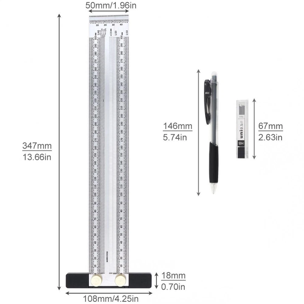 Description Item Description: Measuring Range: 0-300mm Material: Stainless Steel Accuracy: 0.25mm Product Name: T Type Hole Ruler Scribing Gauge Marking Measuring Tool Features: - Made of stainless steel ruler body, sturdy and serviceable. - Clear and accurate engraving scales. - Multifunctional ruler: Can scribe horizontal line, vertical line, long line, short line, parallel line and right angled line, satisfying your various marking needs. - Suitable for positioning and marking works of woodworking mortise and tenon. - High Accuracy: 0.25mm, 0.5mm, 1mm each scale position has fine marked holes and grooves, making the performance more accurate. Package Including: Package Including: 1 x T Ruler 1 x Marking Pen 1 x Pen Refill Product Weight: 140 G / 4.94 Ounces Product Dimensions (L*W*H): 34.7*10.8*1.8 CM / 13.66*4.25*0.71 Inches Package Weight: 145.0 G / 5.11 Ounces Package Dimensions (L*W*H): 36.5*12.0*2.5 CM / 14.37*4.72*0.98 Inches Retail Packaging: Yes, General Box Payment 1. When put the order in the awaiting payment,Payment must be paied within 20days. 2. We accept payment by Paypal 3.Please write down your special requests (color, size, etc.) in the NOTE when you make payment. 4.TOTAL AMOUNT includes the final price plus S&H(Shipping and Handling). Shipping 1. We only ship to eBay confirmed address 2. Item will be shipped within 48 hours after payment received, excluding weekends and holidays. 3. Most orders are delivered within the stated shipping time at the time of purchase 4. Shipping are not available for PO BOX, Parcel locker, Parcel collect 5. If you don't receive your shipment within 35 days after payment, please feel free to contact us. We will take proper actions to solve the problem for you Retrun 1.notify us by message before returning 2.Contact us within 30 days of receiving the item