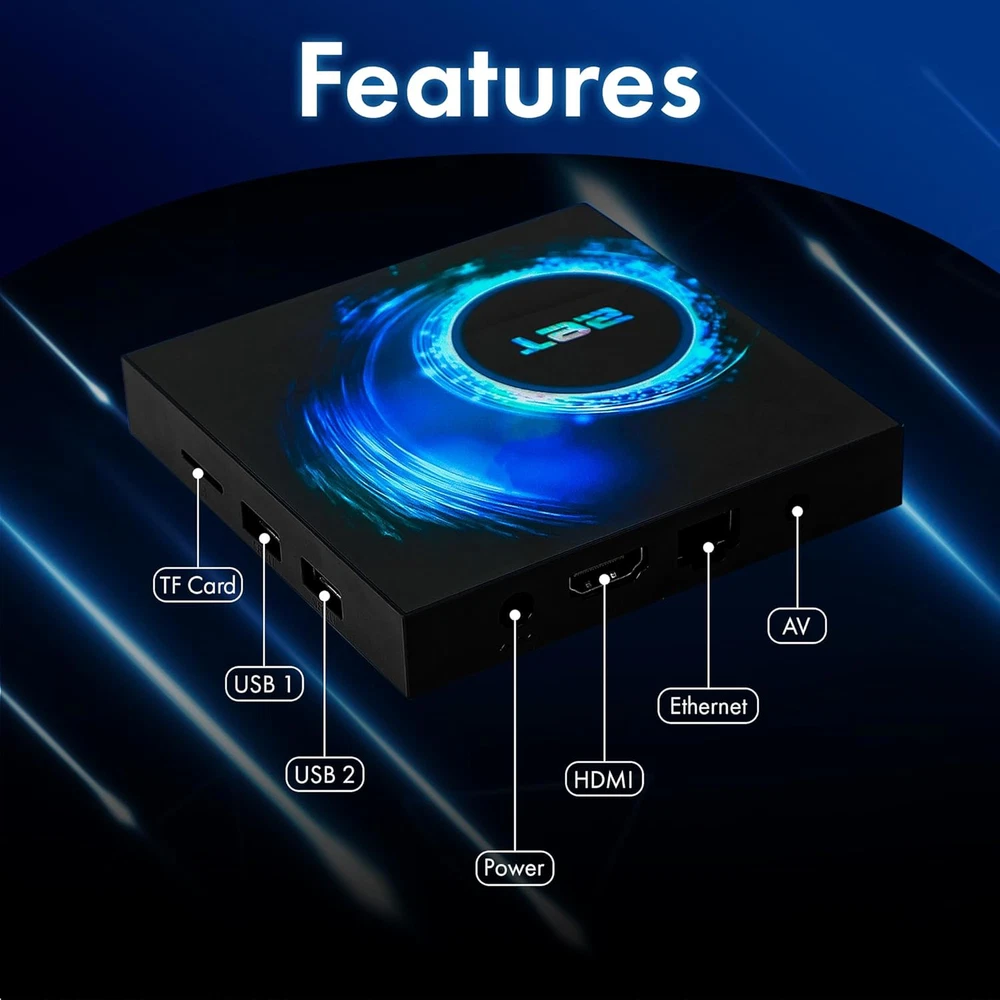 T95 Android TV Box 4GB RAM 128GB ROM- Streaming Media Players with Max Storage- ???Wallecom T-95 Android TV Box 2023 Supports HDR 30 FPS VP9-10???; It has become a True Deal Maker due to giving HDR 30 FPS VP9-10 Profile-2 upto 6K codec support; This is one of the world???s most powerful Android TV streaming media players with enhanced 3D graphics support to HD video in real-time to 6K for clearer or crisper visuals; Has 4GB RAM & 128GB ROM, advance H265 video decoder to give 6K UHD output which makes the android box with better compatibility of software, games, and applications ???Built-in 128GB ROM and 4GB RAM???It comes with 128GB built-in storage and also has 2 USB (2.0) slots to attach extra cards to enjoy the max enhanced capacity ever desired to download more applications & store your favorite Videos; Furthermore, 4GB RAM, Mali-G31 MP2 GPU, 3D graphics acceleration and a powerful H616 Quadcore Cortex-A53 chipset CPU ensures this Android box 2023 to give premium picture quality with highest ever speedy image or video processing, fully satisfied experience for you ???Dual-Band WiFi 2.4G/5.8GHz & BT 5.0???Wallecom Android premiere 4k/hdr streaming media player has built-in highly stable and faster 2.4G/5.8Ghz dual-band WiFi and supports 10/100M ethernet LAN to ensure you enjoy better quality web browsing, playing games, running multiple APPs, and watching movies; The built-in Bluetooth (5.0) enables wireless connections with the mouse, wireless backlit mini keyboard (comes with this combo package), controller for games and other BT enabled devices ???Screen Mirroring & Free Wireless Backlit Mini Keyboard???Enjoy content from Android mobile or iOS devices on the bigger screen to play games, stream UHD videos, or share photos on the bigger screen; Simply plug in the HD port and connect to the internet via Wi-Fi or Ethernet to start enjoying thousands of channels and APPs; This Wallcom tv box comes with a free Wireless mini keyboard that connects to the device via Bluetooth to enable you to type speedily than remote and browse hassle-free