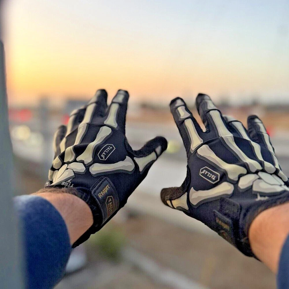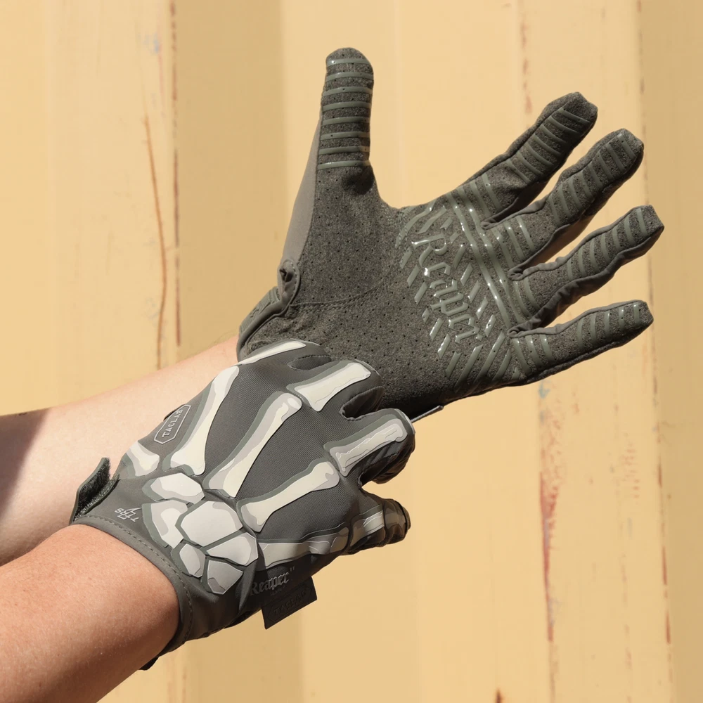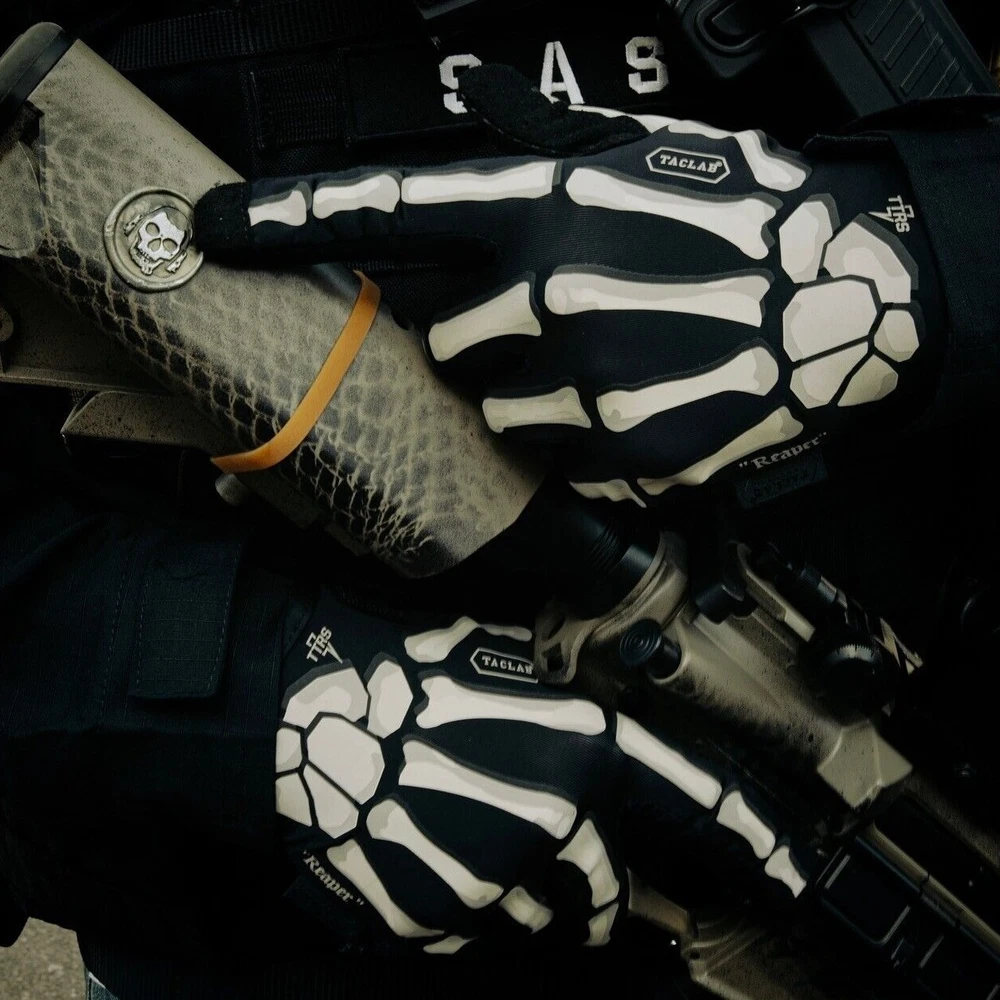 I. Superb craftsmanship. Luxury-grade materials. We designed Reaper to be the ultimate piece of daily gear. From adventure, to special operations, Reaper?s got your back. II. Bold and beautiful design emerges from the shadows. Reaper gloves have been meticulously engineered for the highest of elite operatives. Approved by authorities and enforcement officers globally, they offer a level of protection and performance that pursues legendary status. III. Crafted with precision and designed for performance, the Reaper gloves redefine the standard for tactical gear. Our exclusive, specialist-grade materials and ergonomic design ensure unparalleled comfort and flexibility, allowing for effortless movement and pinpoint accuracy. In the depths of darkness, where precision is paramount, the Reaper gloves are your silent, deadly ally. FEATURES: - 5-Finger Touchscreen Compatible - Non-Slip Grip Texture on Palm and Fingers - Our ultra-soft TACLAB ICE fabric is both stretchy breathable with added UV protection. - Ventilated and silicon grip palm provides cooling and friction. MATERIALS: BACK:87%NYLON, 13%ELASTANE PALM:58% NYLON, 40% PLOYURETHANE, 2%CARBON WEIGHT: PALM:58% NYLON, 40% PLOYURETHANE, 2%CARBON FIT: TIGHT