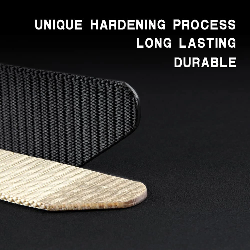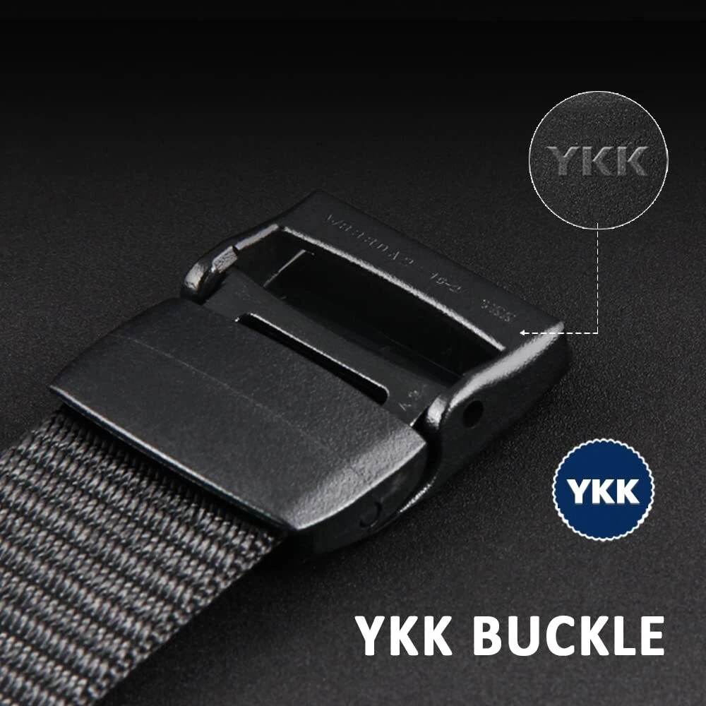 QUICK RELEASE--Creative lock and release design for a much easier and faster mechanism, one-handed operation for unlimited adjustments and replacements HEAVY DUTY--The sturdy nylon strap holds your waist securely, is easy to conceal carrying like guns and other work tools, and supports movement during exercise and heavy working. KEEPING FIT--Nylon straps are elastic to accommodate waist changes in different occasions such as: No need to sit or climb and adjust from time to time before or after lunch. It's also a custom-fit construction. Just unbuckle and cut the strap so you don't have to worry about getting the wrong size just by buying a little longer. BUILT TO LAST--YKK buckle with simple mechanism on pure nylon strap, it is an easy belt for you to go through all the rough situation. LIGHT-WEIGHT--The upgraded design retains the buckle's sleek construction and improves performance, but reduces weight and makes it more comfortable with the pants on.