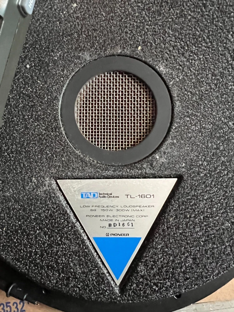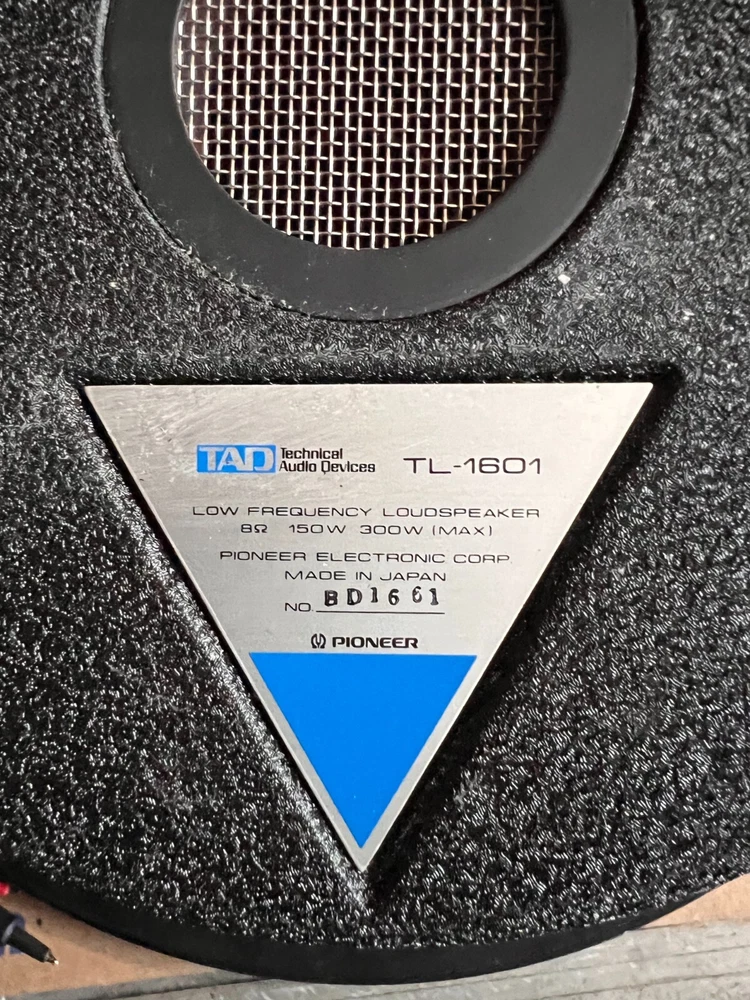 TAD- TL 1601 Woofer Pair (2 Speakers) For sale from my personal collection: a fantastic-sounding pair of Pioneer TAD 1601 speakers. Impedance: 8 Ohms. While the serial numbers are not consecutive, they are very close and come from the same series. These speakers were originally purchased from an audio engineer and designer with a deep passion for TAD components. They were all acquired at the same time as part of a carefully curated collection. One serial number has a slight smudge but remains legible. Shipping: These will be meticulously packed for safe transit—double-boxed with high-quality styrofoam to ensure they arrive exactly as described. A rare opportunity to own an incredible pair of TAD 1601s—don't miss out!